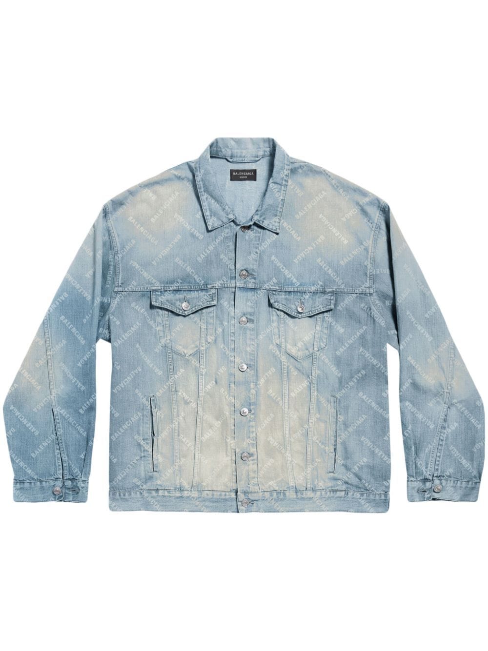 light blue cotton washed denim all-over logo print classic collar front button placket two chest flap pockets drop shoulder long sleeves buttoned cuffs two side slit pockets waist tabs straight hem When buying this unisex item, keep in mind that it is graded in standard men's sizing We've partnered with Good On You - an independent agency that rates how brands perform in relation to their impact on the planet, people and animals, with a multi-criteria rating simplified to a five points scale. In order to be awarded our conscious label, larger brands need to score a minimum of four out of five ('Good'), while smaller brands must score at least three out of five ('It's a start'). This item comes from a brand rated four out of five ('Good') by Good on You. Please note, this is a brand-level rating and does not guarantee that this product is made with conscious materials. Learn more about what makes a product Conscious on our Conscious Criteria page