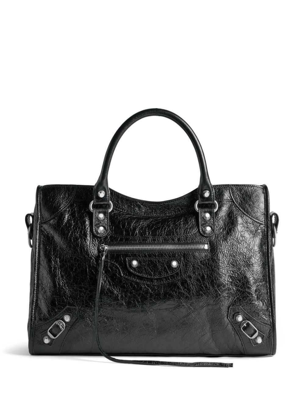 black lambskin crinkled finish top zip fastening two top handles adjustable detachable shoulder strap knotted leather zip pulls stud detailing front zip-fastening pocket decorative buckle detail main compartment internal zip-fastening pocket debossed internal logo canvas lining This piece comes complete with a protective dust bag. We've partnered with Good On You - an independent agency that rates how brands perform in relation to their impact on the planet, people and animals, with a multi-criteria rating simplified to a five points scale. In order to be awarded our conscious label, larger brands need to score a minimum of four out of five ('Good'), while smaller brands must score at least three out of five ('It's a start'). This item comes from a brand rated four out of five ('Good') by Good on You at the time it was added on FARFETCH. Please note, this is a brand-level rating and does not guarantee that this product is made with conscious materials. Learn more about what makes a product Conscious on our Conscious Criteria page