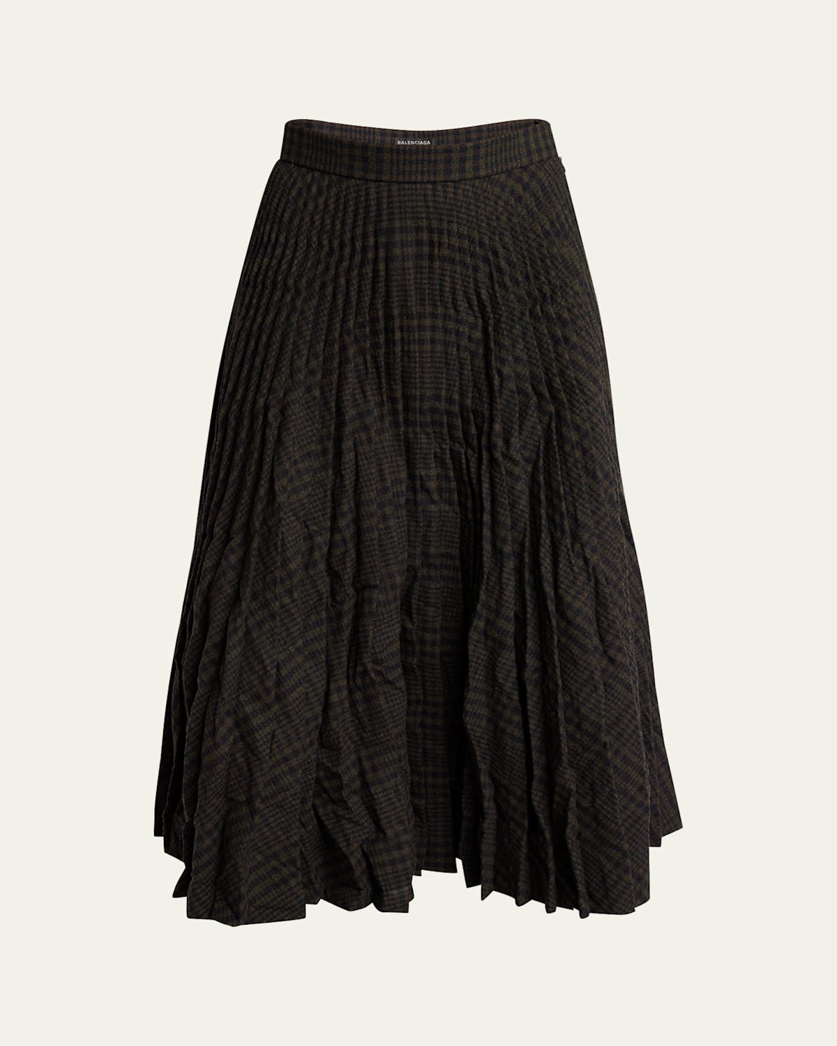Balenciaga vintage check skirt with creased and pleated detail High waist Midi length Aline silhouette Midi length Side zip Wool Dry clean Made in Italy
