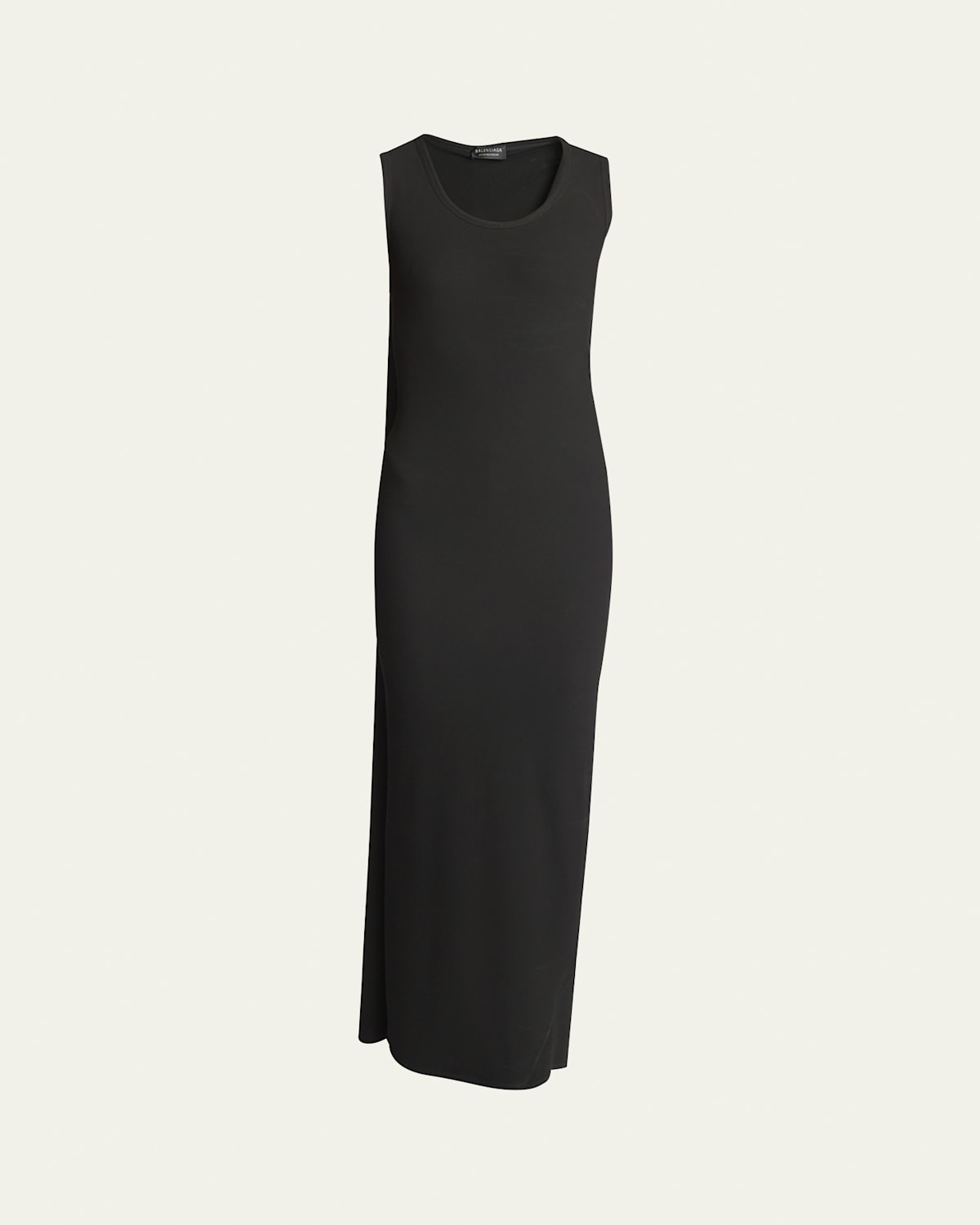 Balenciaga lightweight ribbed jersey tank gown features a draped panel at the back Scoop neck Sleeveless Full length Column silhouette Viscose/elastane Dry clean Made in Italy