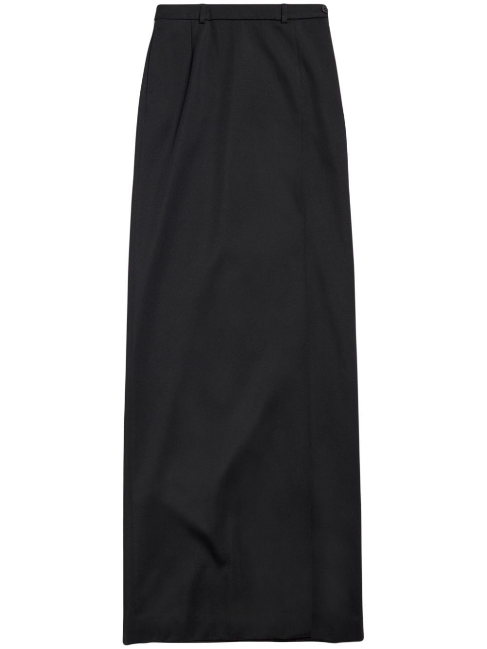 black high-waisted belt loops concealed side zip fastening tailored cut floor-length side slit
