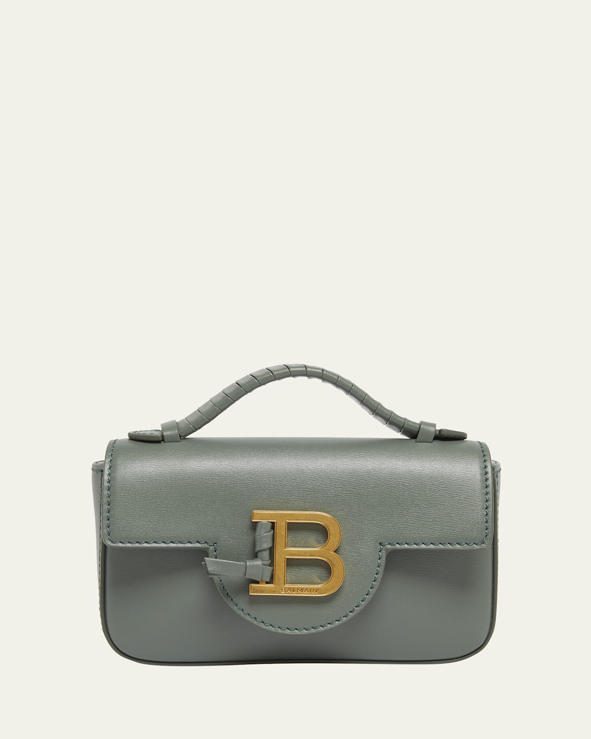 Balmain "BBuzz 17" top handle bag in smooth calfskin Top handle Removable, adjustable crossbody strap Can be worn as a top handle or crossbody bag Flap top with B magnetic closure Interior, one slip pocket Approx. 3.9"H x 6.7"W x 1.6"D Professional cleaning recommended Made in Italy