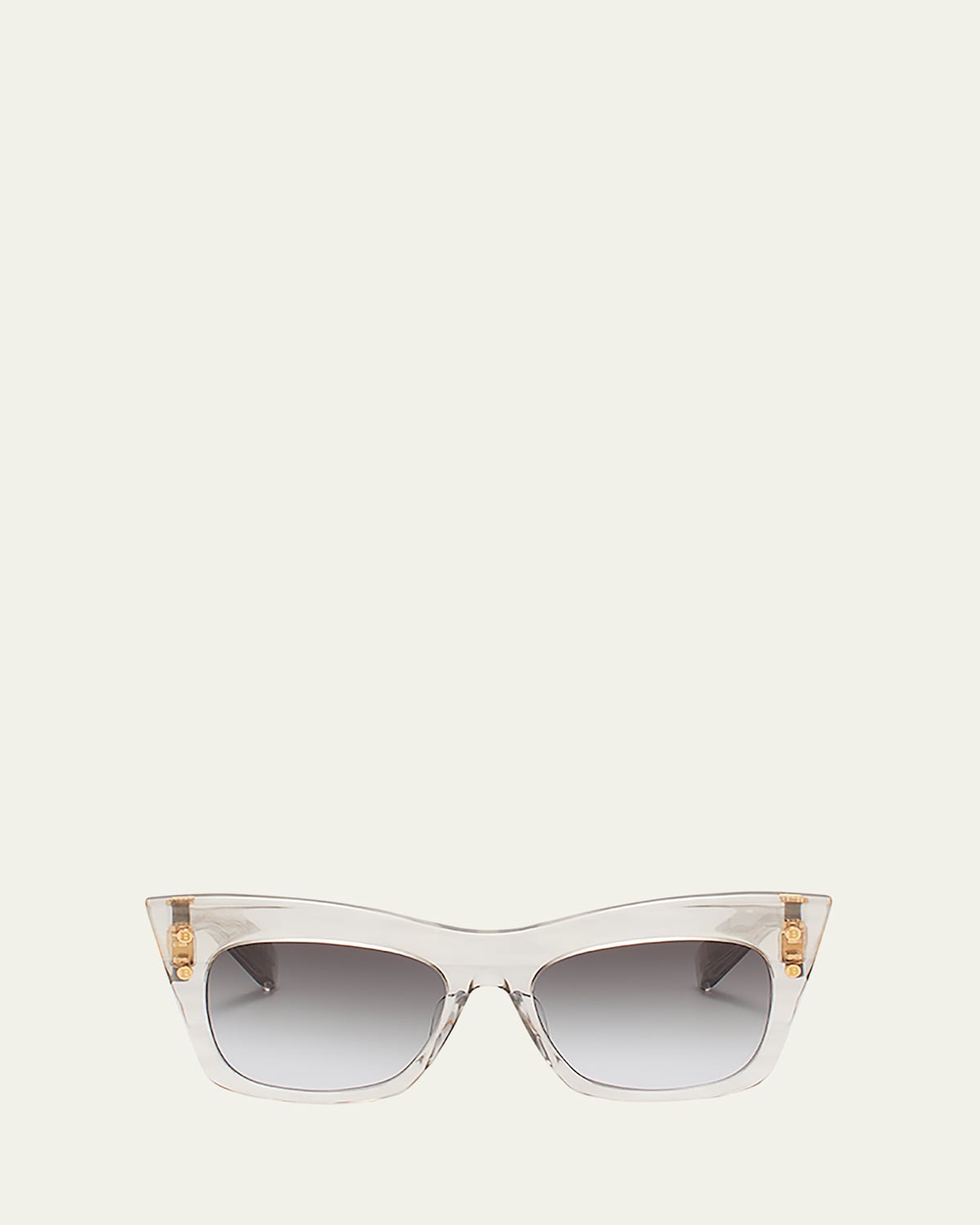 Balmain "BII" cateye sunglasses in acetate and titanium Lens/bridge/temple (in mm): 5518145 Golden hardware on frames Saddle nose bridge Logo accent at hinges Thin, tapered arms 100% UVA/UVB protection Made in Japan