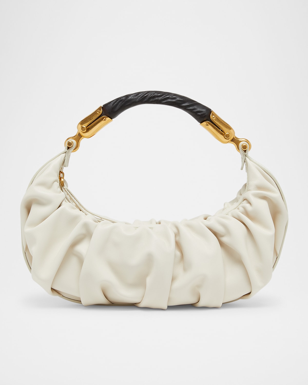 Ebene Medium Ruched Top-Handle Bag in Leather