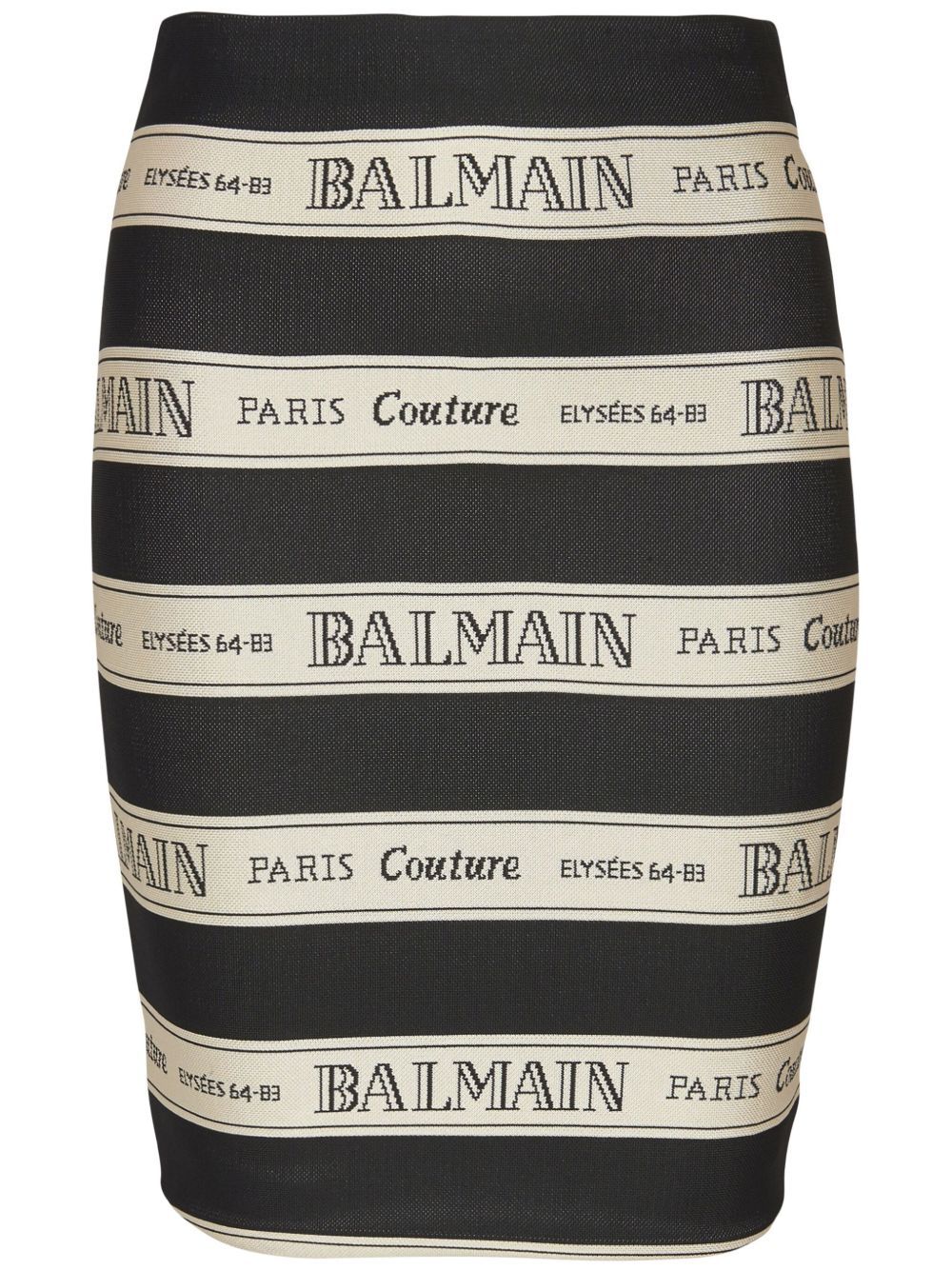 black stretch-design rear zip fastening jacquard logo motif fitted waistline straight hem