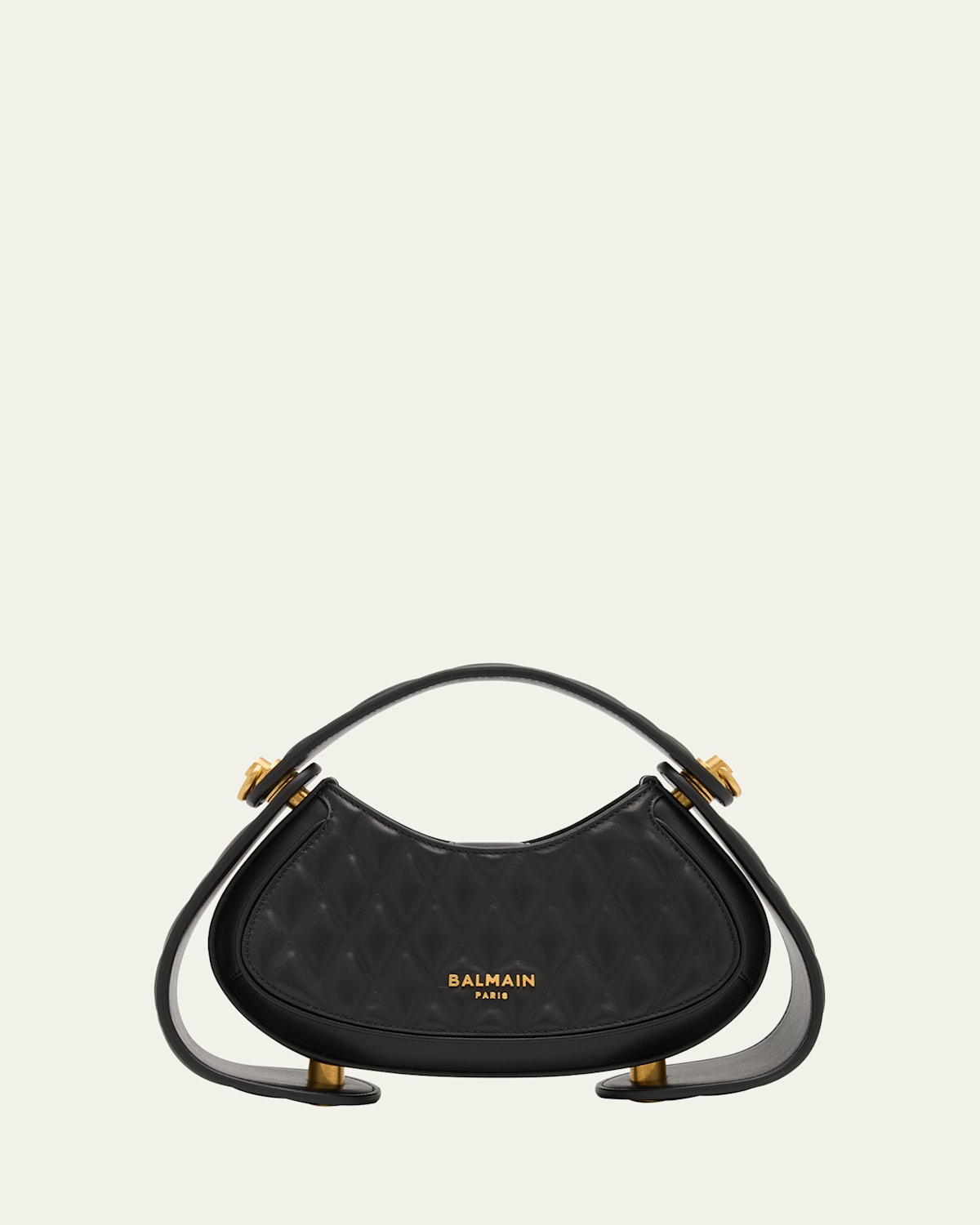 Balmain "Jolie Madame" top handle bag in grid padded leather Structured top handle Detachable chain/leather shoulder strap Can be worn as a top handle or shoulder bag Open top with magnetic center strap Interior, one card slot Approx. 8.3"H x 11.2"W x 3.3"D Professional cleaning recommended, spot clean Made in Italy