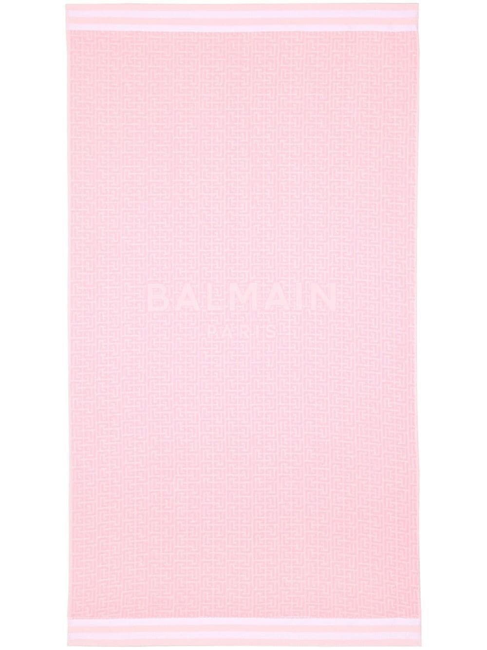 pink cotton blend full jacquard towelling finish debossed logo to the front striped edges tonal design