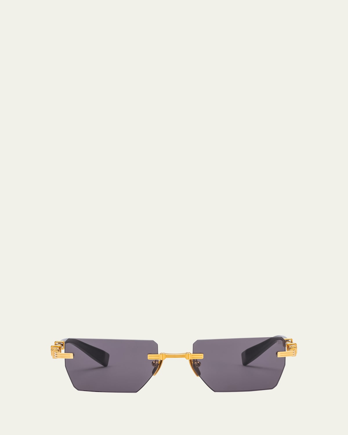 Balmain "Pierre" oval sunglasses in acetate Eye/bridge/temple (in mm): 53/19140 Solid lenses Adjustable nose pads Thin, tapered arms Capped earpieces Acetate 100% UVA/UVB protection Made in Japan