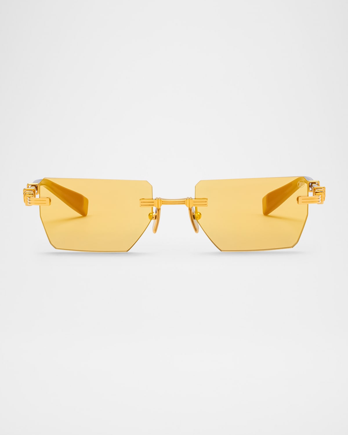 Balmain "Pierre" rectangle sunglasses in titanium Gradient lenses Adjustable nose pads Thin, tapered arms Capped earpieces Classic logo at lens Titanium 100% UVA/UVB protection Made in Japan