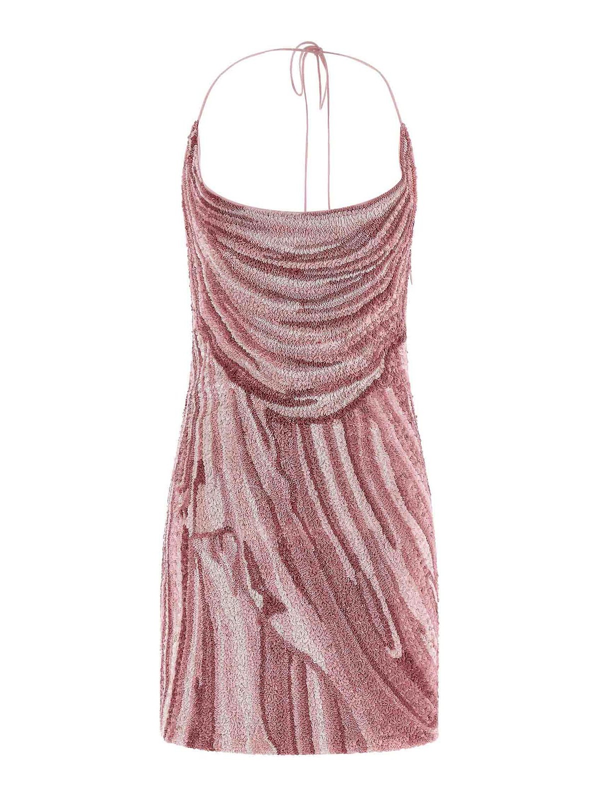 Mini-robe en soie entièrement recouverte de paillettes, encolure de style américain avec dentelle ajustable à l'arrière du cou, fermeture éclair latérale