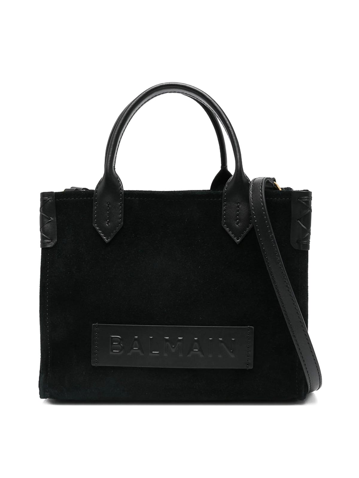 Poignées supérieures noires, logo embossé, bandoulière amovible, poche plaquée à détails ton sur le dessus