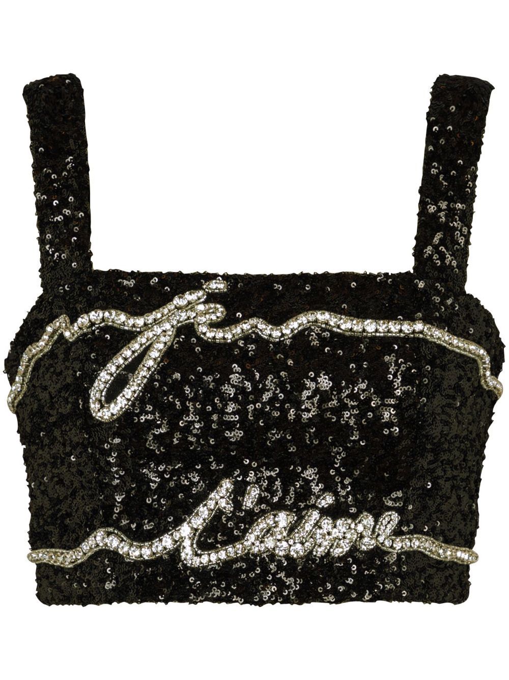 black rear zip fastening sequin embellishment square neck wide shoulder straps crystal embellishment straight hem cropped