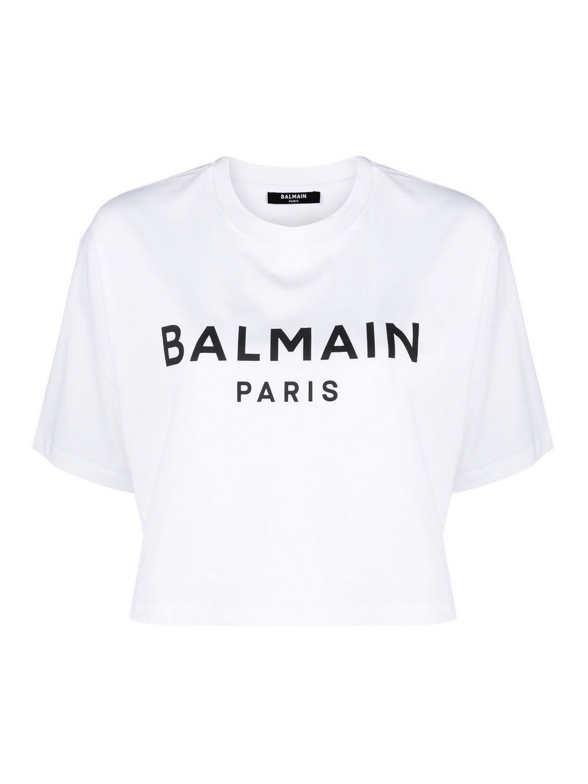 T-shirt court à logo de Balmain avec logo en coton blanc/noir imprimé sur le devant, col rond, manches courtes et court