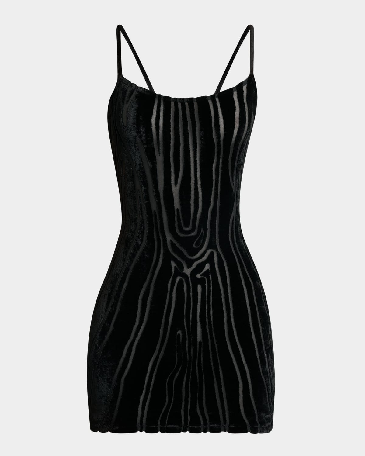 A figurehugging mini dress in velvet burnout by Balmain. Scoop neckline Sleeveless Bodycon silhouette Hem falls above the knee Slipover style Viscose/elastane Professional cleaning recommended Imported