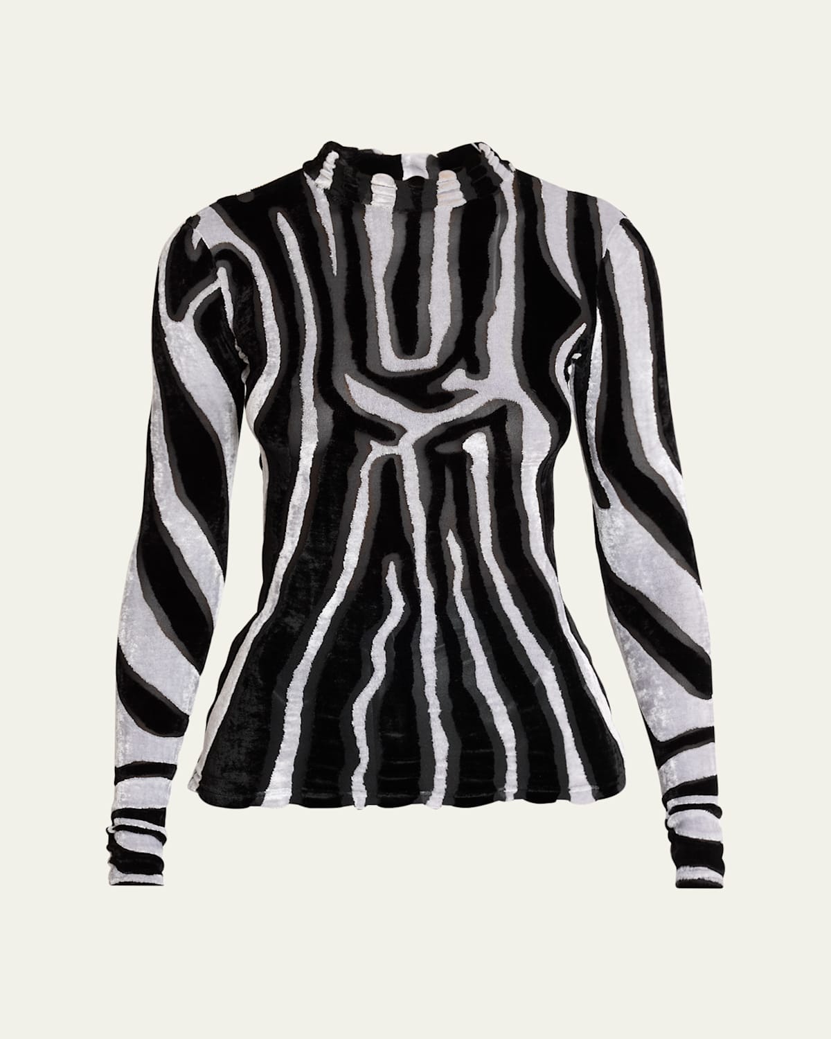 Balmain top is artfully crafted of a zebra velvet burnout Mock neckline Long sleeves Fitted Pullover style Viscose/elastane Professional cleaning recommended Made in Bulgaria