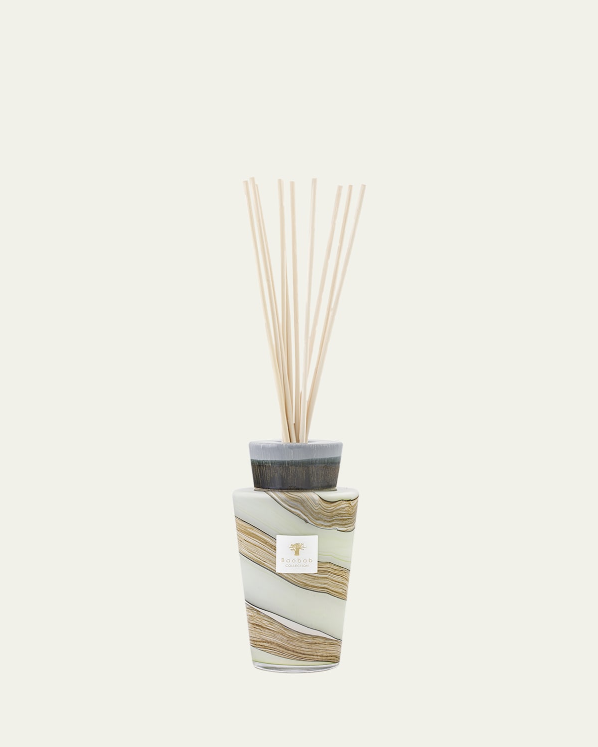 The Sonora Totem Home Diffusers are large refillable bottles in handblown glass. A handcrafted ceramic stopper completes the bottle, turning it into a sophisticated work of art. The spicy scent is reminiscent of the cinematic setting of the Mexican desert after which these items are named. A creative blend spreads warm, spicy notes throughout your home. Includes reeds and fragrance Handcrafted of glass and ceramic Fragrance Notes: saffron, myrrh, patchouli Fragrance Profile: spicy/warm Approx. 5.71"Dia. x 11"T Volume: 67.6 oz./ 2 L Made in Belgium