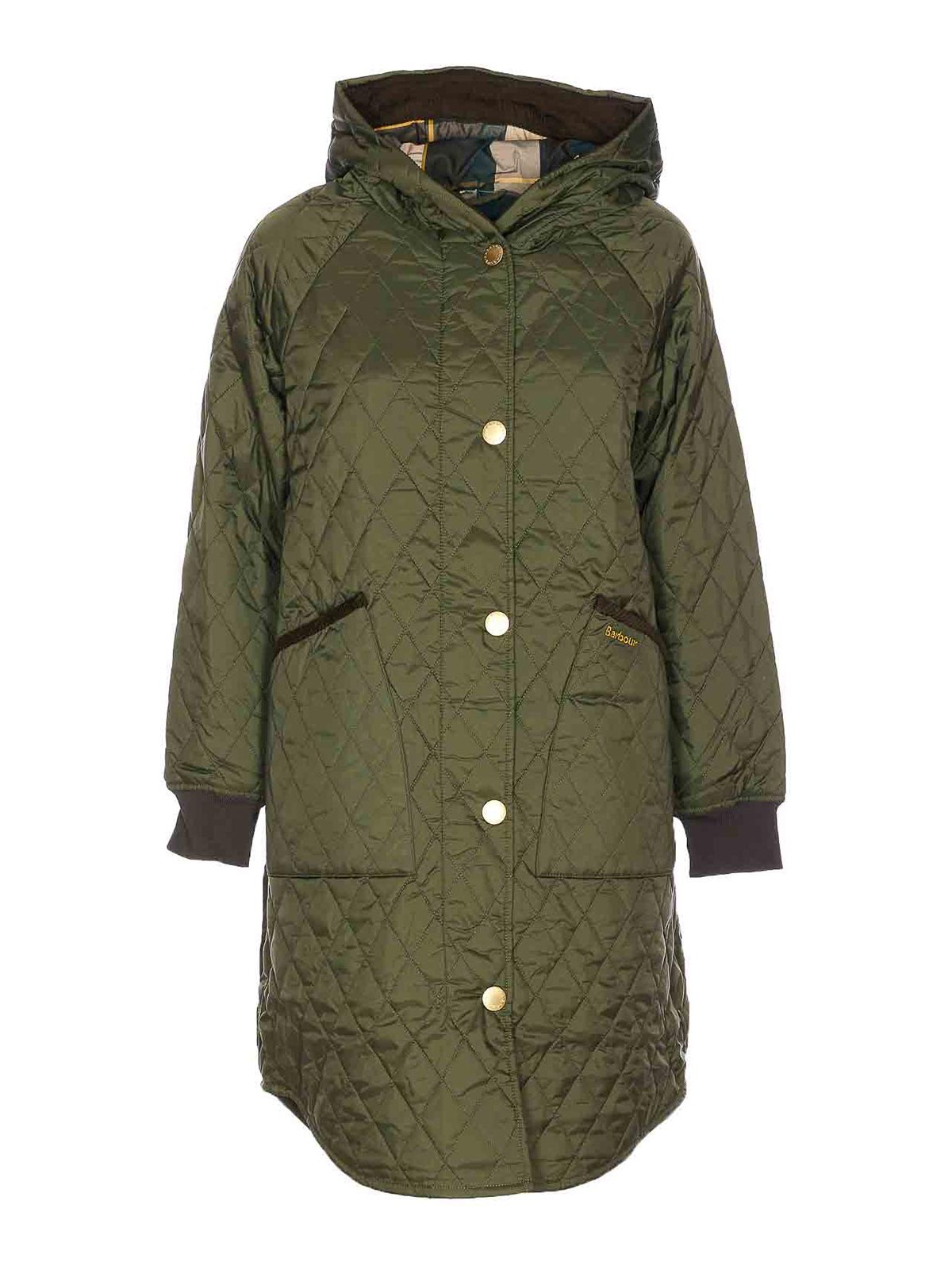 Veste matelassée Hilary verte Barbour avec boutons et capuche zippée, manches longues, poches, logo brodé sur les poignets élastiqués Nom de la couleur du créateur: vert