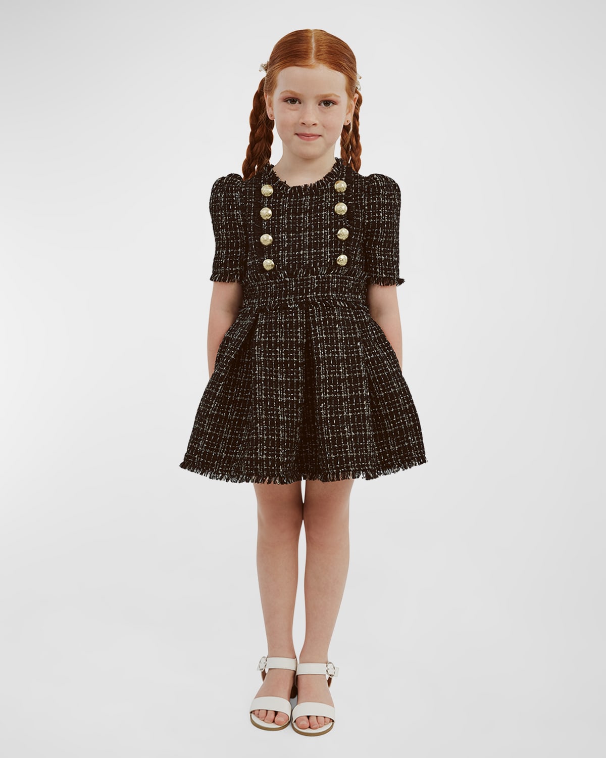 Girl's Brielle Pleated Boucle Dress, Size 7-14