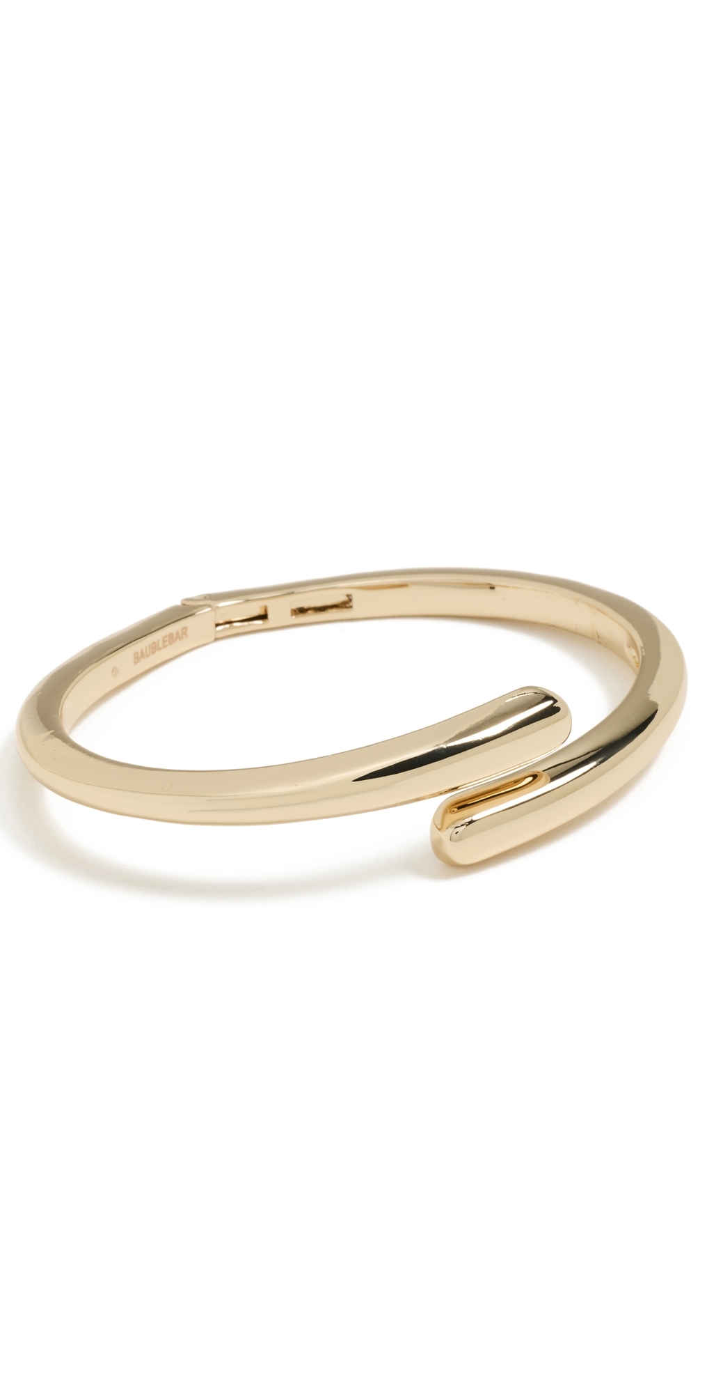 Gold-tone metal. Polished finish. Cuff. Imported, China. Measurements: Length: 3.5in / 9.0cm Diameter: 2.25in / 6cm