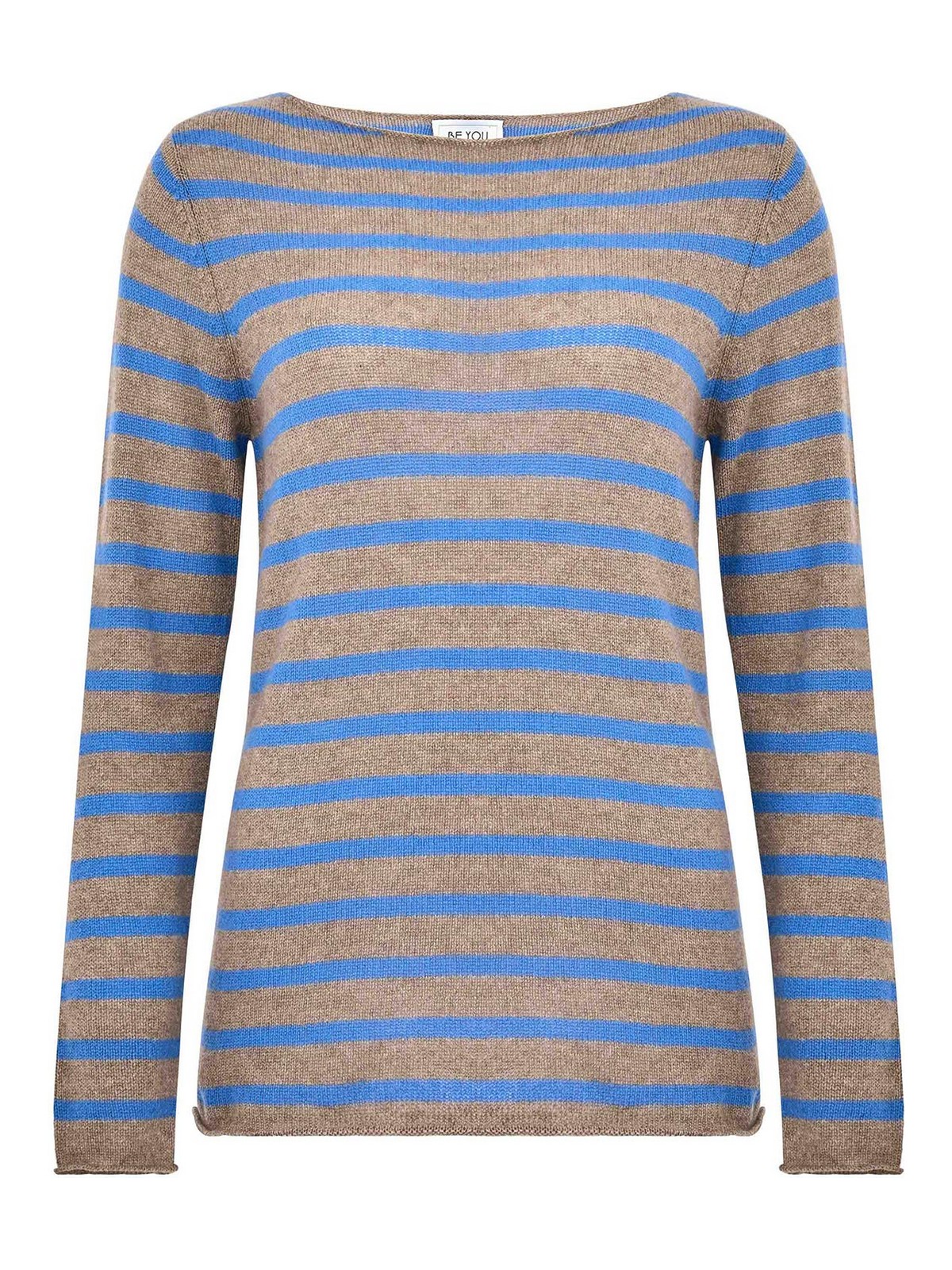 Pull rayé Be you gris et bleu clair à rayures horizontales col bateau pour femmes