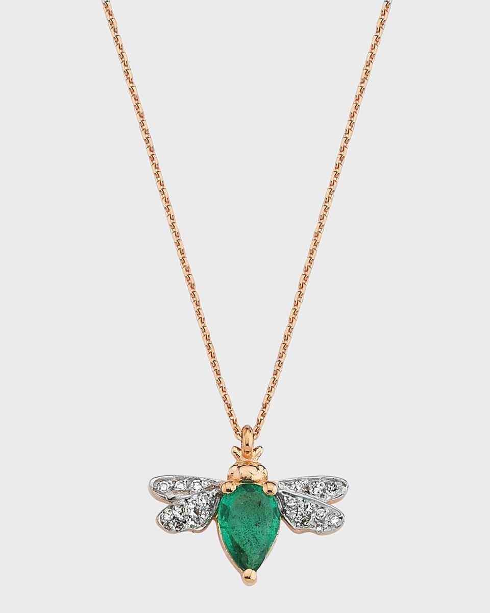 14k Rose Gold Bee Diamond and Emerald Necklace