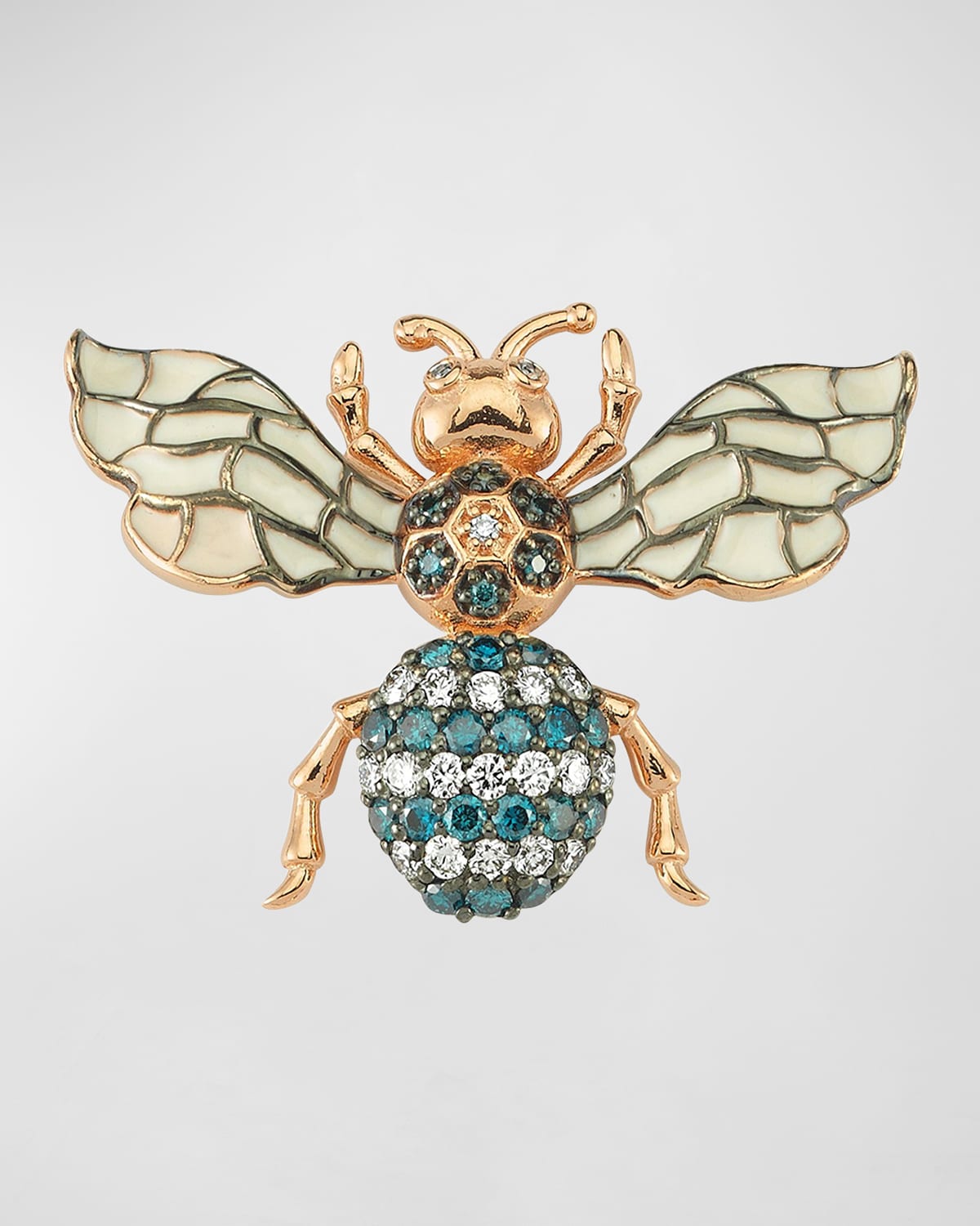 BeeGoddess earring Shiny 14karat gold Blue and HVSSI white diamonds 0.20 white diamond carat weight 0.24 blue diamond carat weight Sold individually For pierced ears Imported