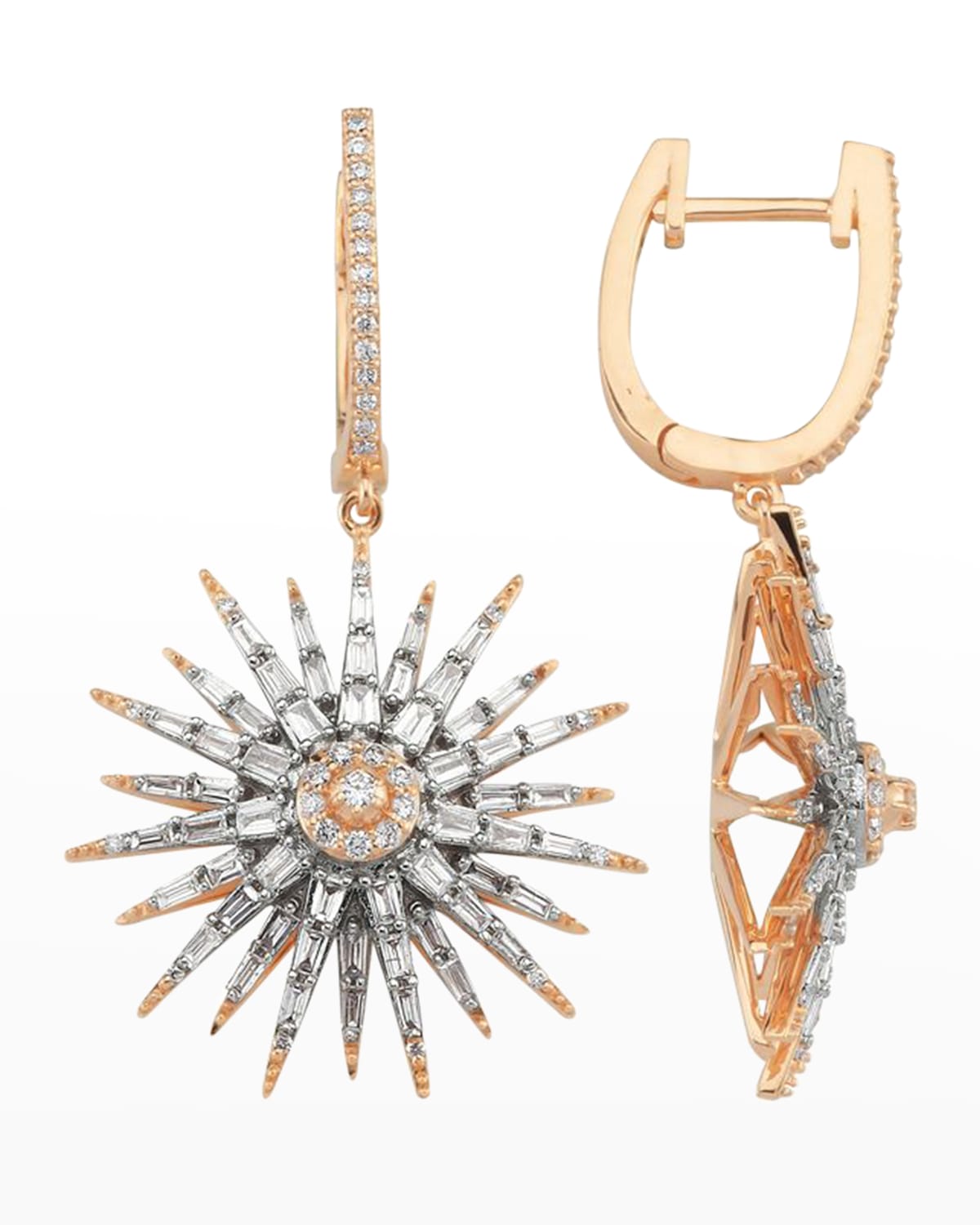 BeeGoddess earrings 14karat gold Baguettecut diamonds HVSSI round diamonds 0.31 total round diamond carat weight 1.08 total baguette diamond carat weight For pierced ears Imported