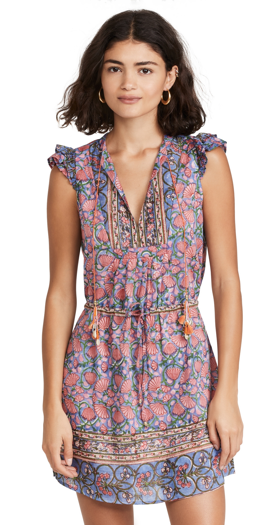 Cannot be shipped outside the USA Fabric: Lightweight, non-stretch batiste. Floral pattern. Flutter sleeves. Metallic threading at bodice. Imitation shell accents. Tie keyhole at neckline. Drawstring waist. Shell: 70% cotton/30% silk. Lined. Hand wash. Imported, India. Measurements: Measurements from size XS Length: 32.75in / 83.0cm, from shoulder