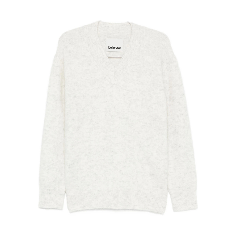ecru V-neck long sleeves drop shoulder ribbed cuffs and hem