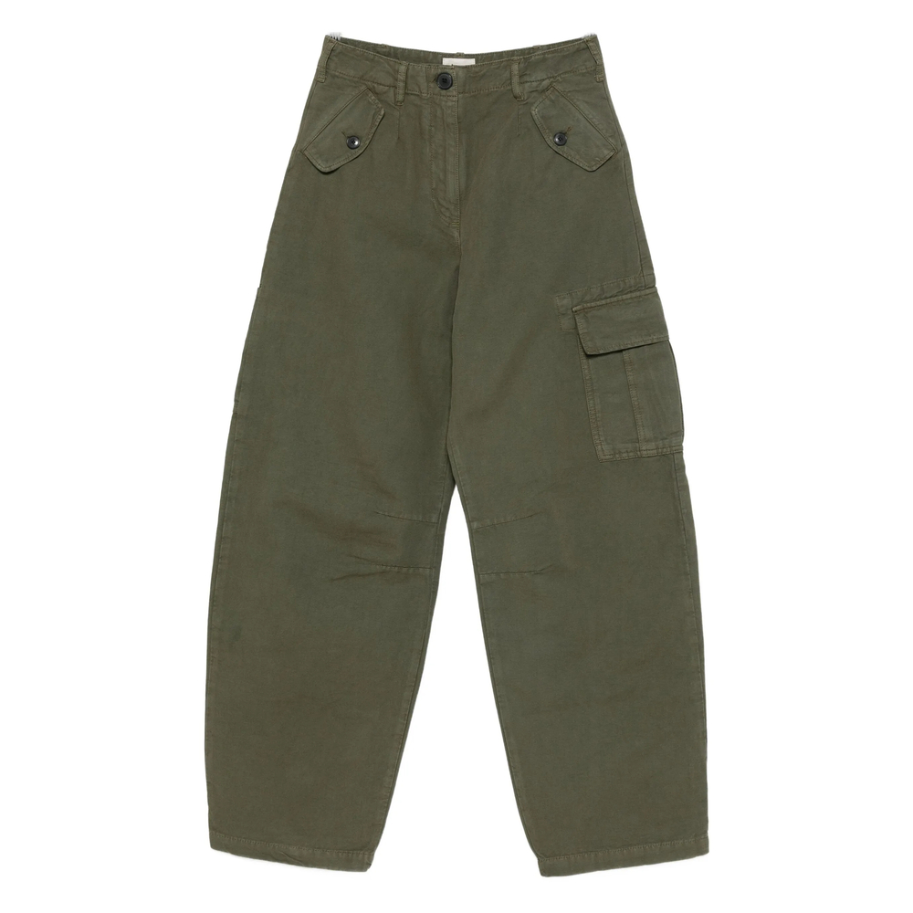 green buttoned flap pockets side cargo pocket button fastening belt loops seam detail
