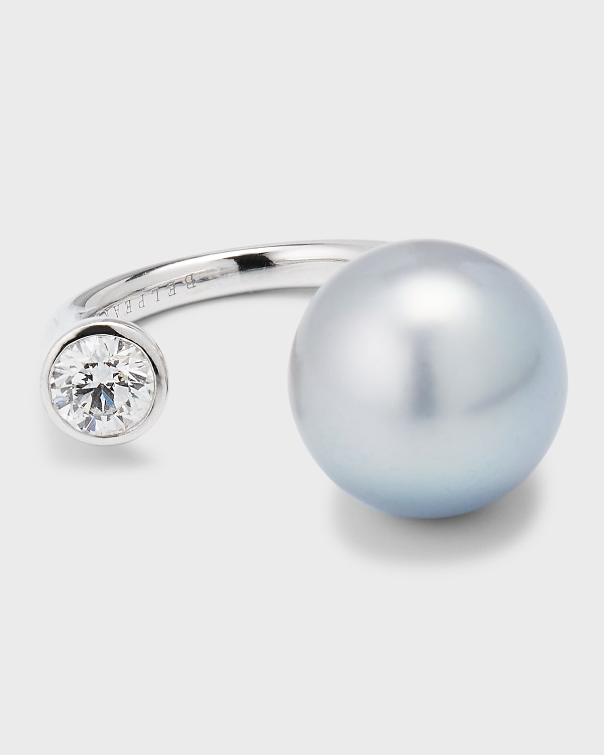 Belpearl cocktail ring 18karat solid white gold 1 naturally gray Tahitian cultured pearl Pearl dimension: 13mm 1 bezelcut white diamond, 0.70 total diamond carat weight Approx. ring size 7 Imported