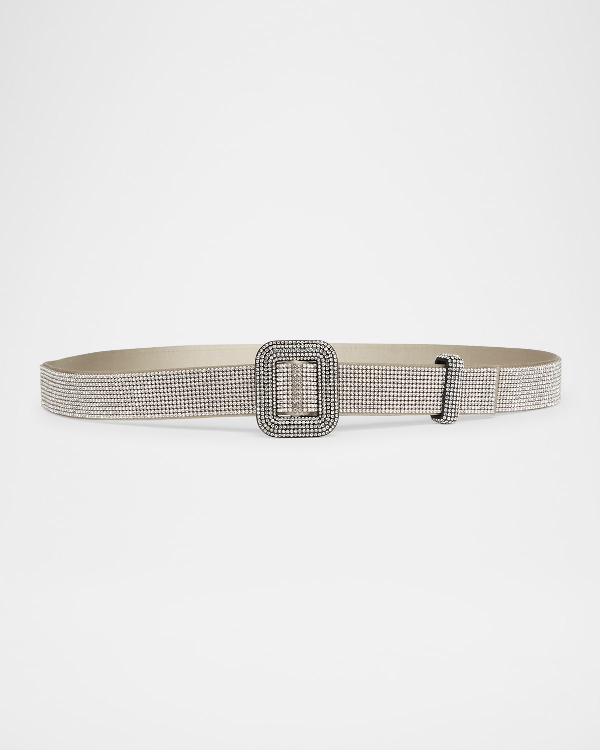 Benedetta Bruzziches "Venus" glass embellished buckle belt Approx. 8.6"W Adjustable it Item Weight (Lbs.): 0.4 Polyester/glass Professional cleaning recommended Made in Italy