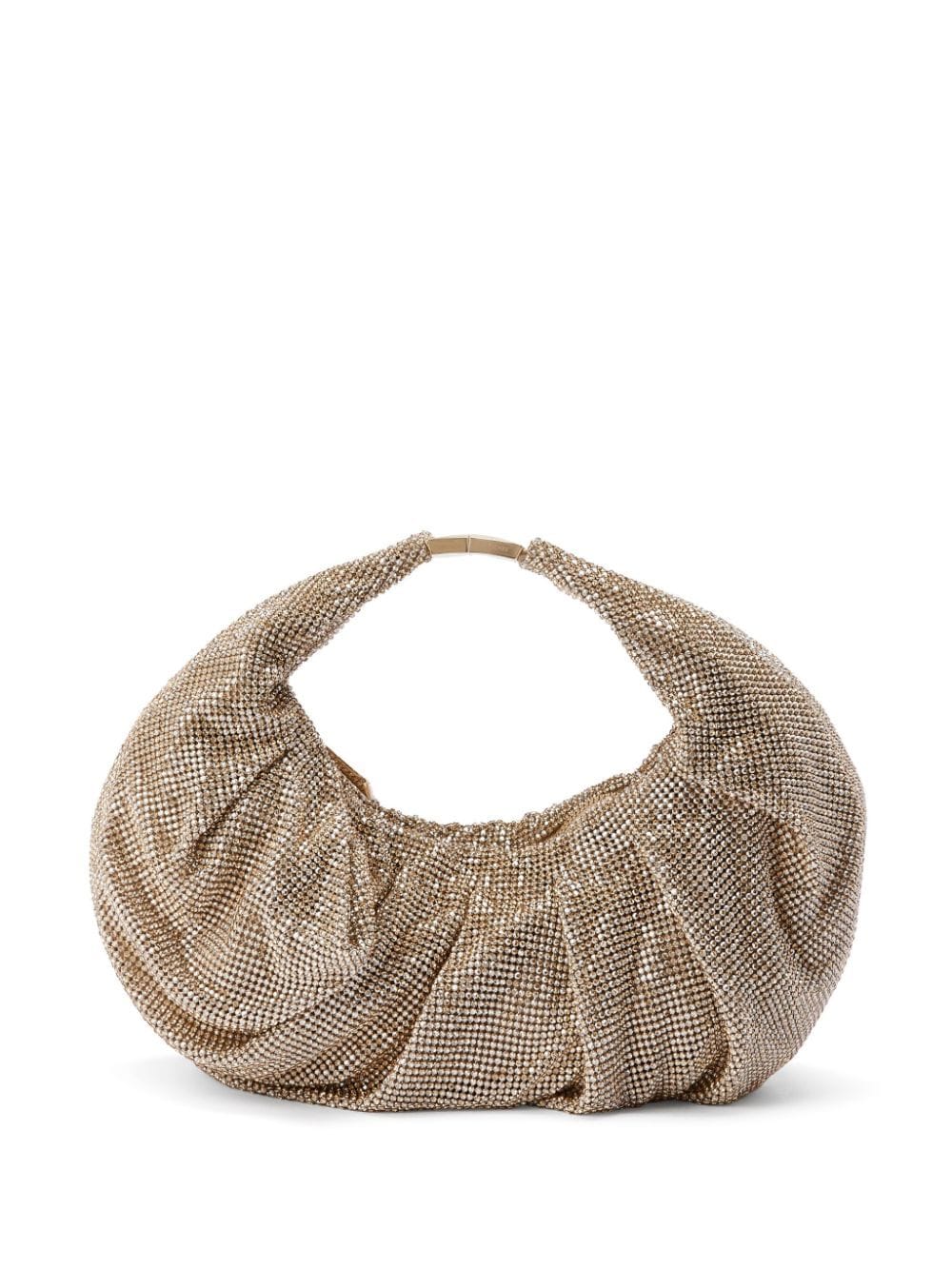 gold-tone mesh design rhinestone embellishment pleat detailing logo-engraved gold-tone hardware top zip fastening main compartment internal logo patch full lining