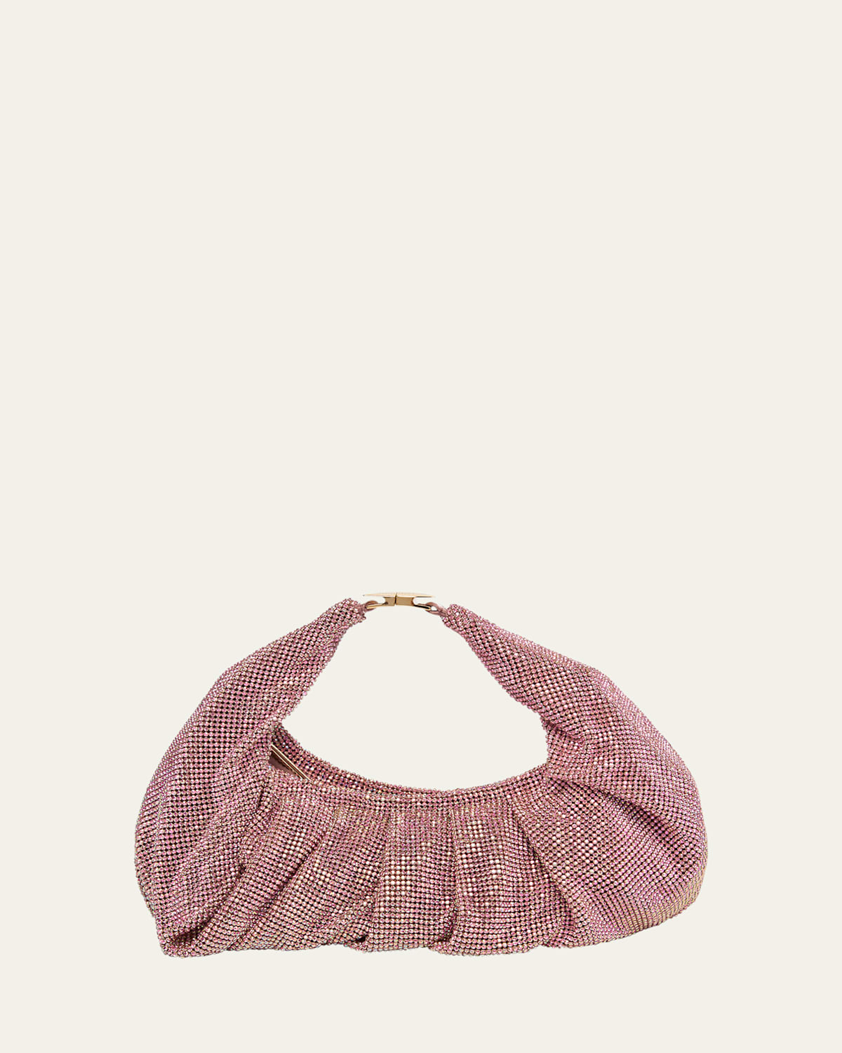 Benedetta Bruzziches "Yenneffer" top handle bag in allover rhinestones Detachable top handle Zip top closure Golden hardware Lining: Silk Approx. 4.7"H x 9.8"W x 3.9"D Made in Italy