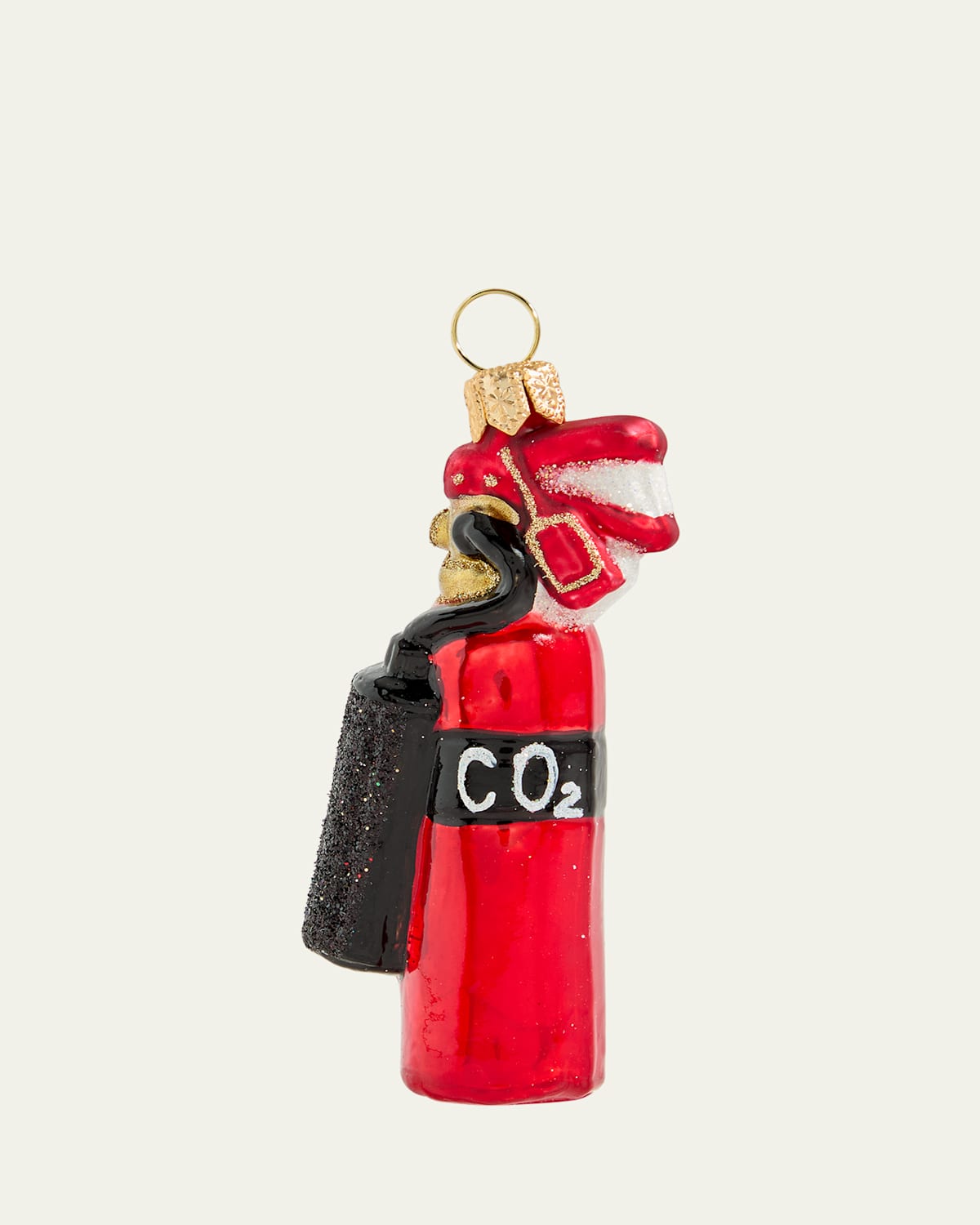 Fire extinguisher ornament handcrafted of soda glass, borosilicate glass, and glitter Approx. 1.6"L x 0.9"W x 3.1"T Made in Poland