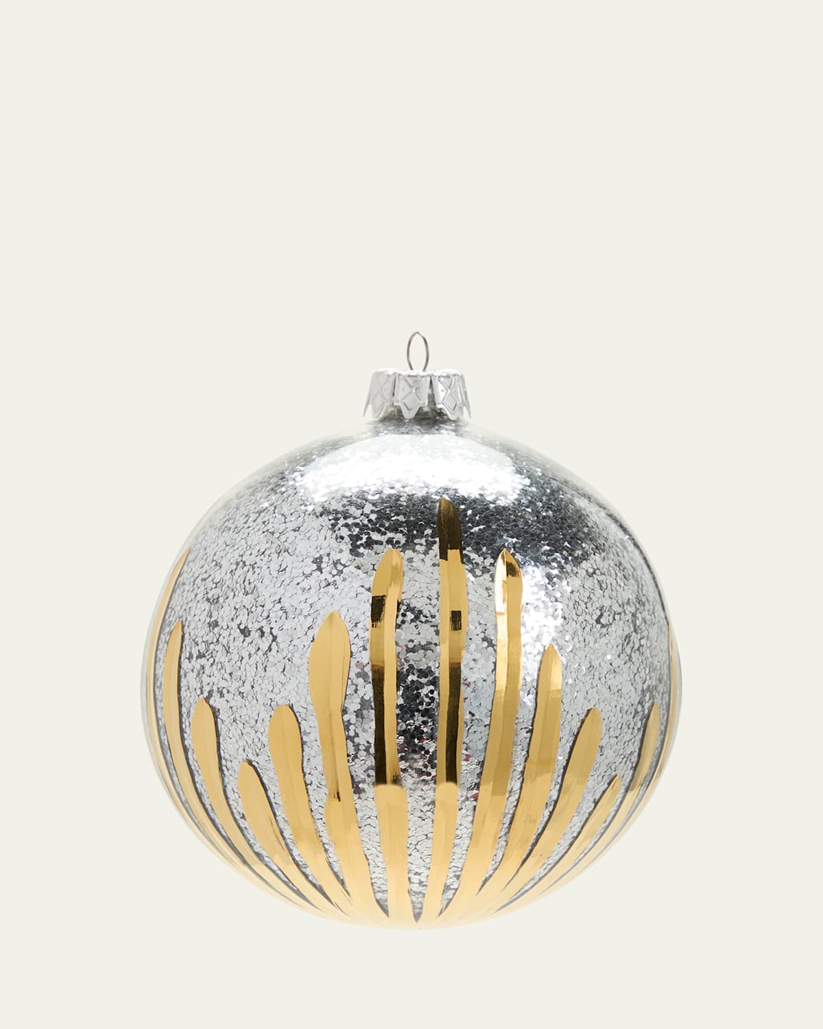 Christmas ornament featuring handapplied embellishments and striped appliques Handcrafted of borosilicate glass Approx. 4"Dia. x 4.8"T Item Weight (Lbs.): 0.2 Made in Egypt