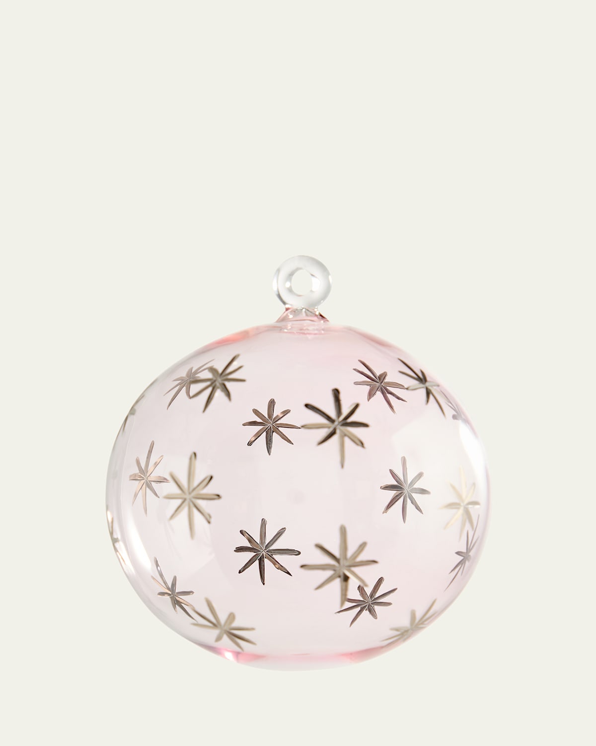 Clear purple ornament with platinum star details Handcrafted of borosilicate glass Approx. 4"Dia. x 4.8"T Item Weight (Lbs.): 0.2 Imported
