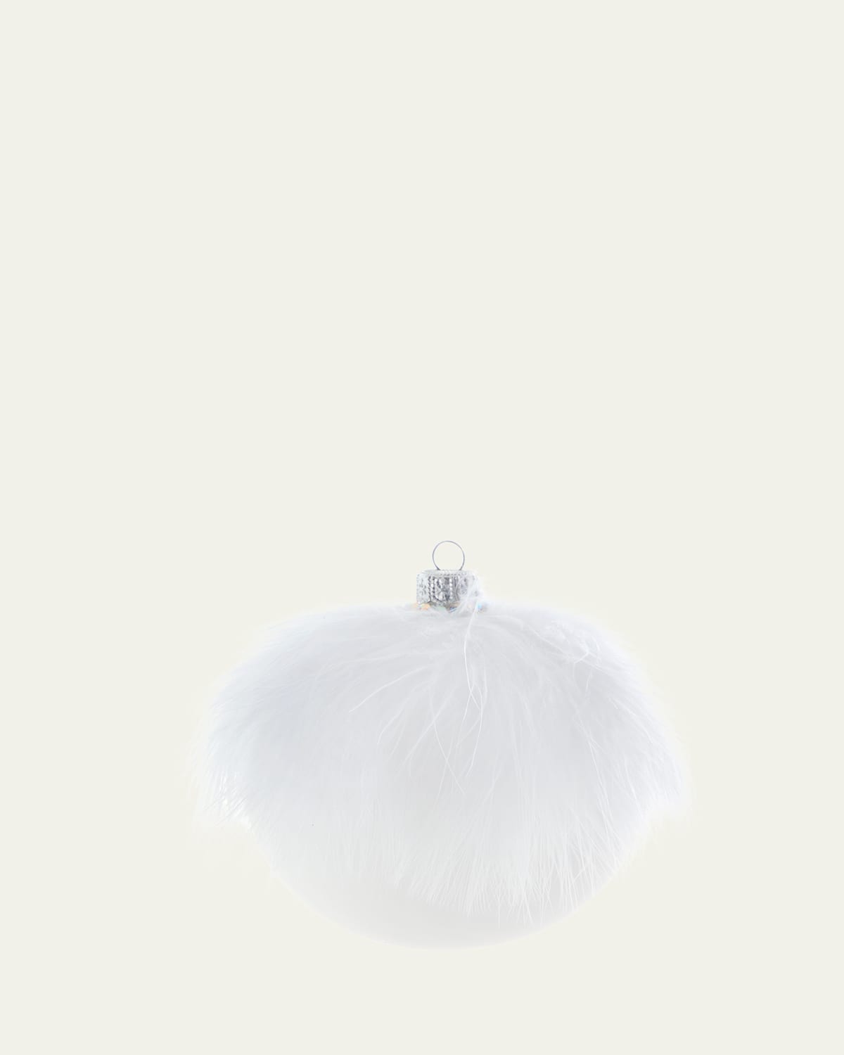 This round lacquered ornament is adorned with dyed turkey feathers. Bring a froufrou flair to your Christmas tree and traditional holiday collection. Handcrafted with glass, brass, and feathers Approx. 3.94"L x 3.9"W Item Weight (Lbs.): 0.1 Handle with care Made in Poland