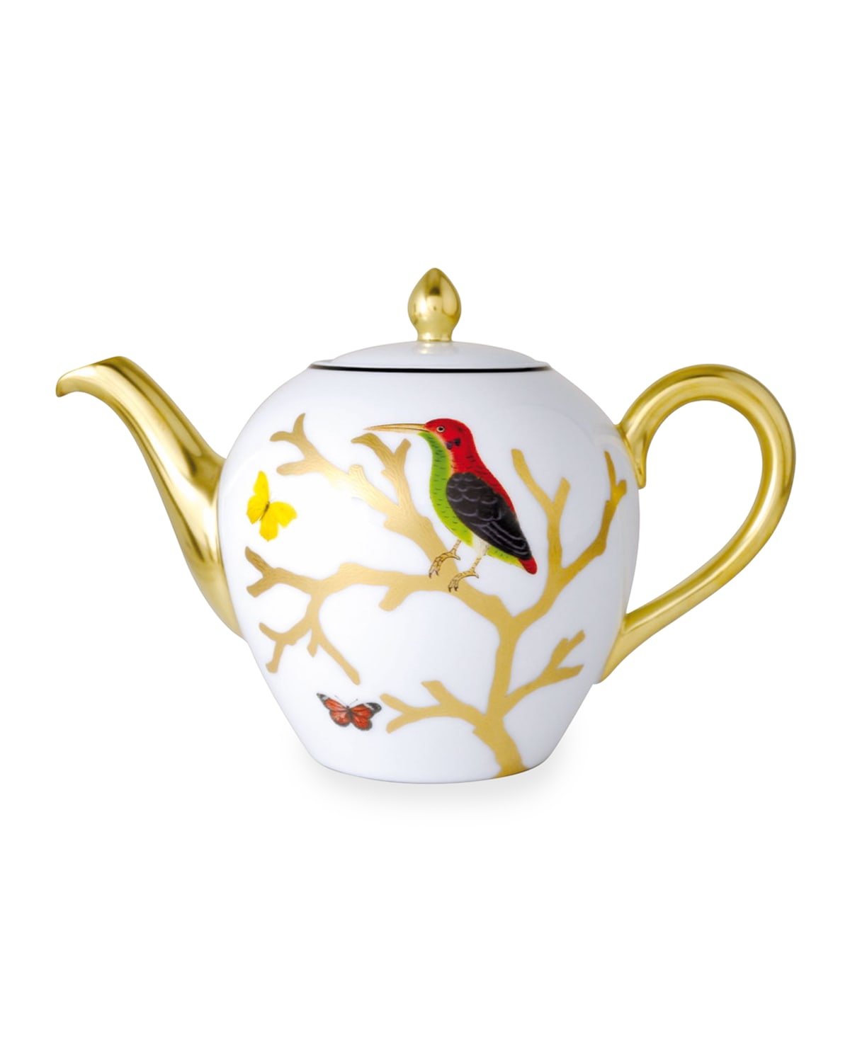 Inspired by the curiosity cabinets that were so fashionable in the 16th and 17th centuries, the pattern is available on a full dinnerware service with scenes reminiscent of Japanese prints: birds depicted in autumnal colors perch on stylized trees in raised gold. Made of porcelain. Approx. 5.1"T. Hand wash. Made in France.