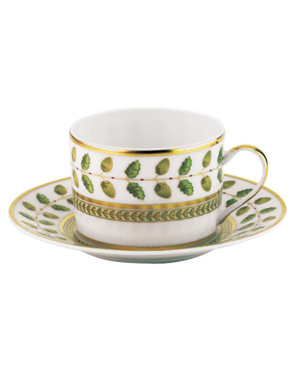Constance offers all the refinement of the Empire style. Acorns, Oak and laurel leave the symbols of strength, longevity and peace are delicately arranged and appear as if painted by an artist's brush in watercolors. Saucer is made of porcelain. Cup sold separately. Imported.