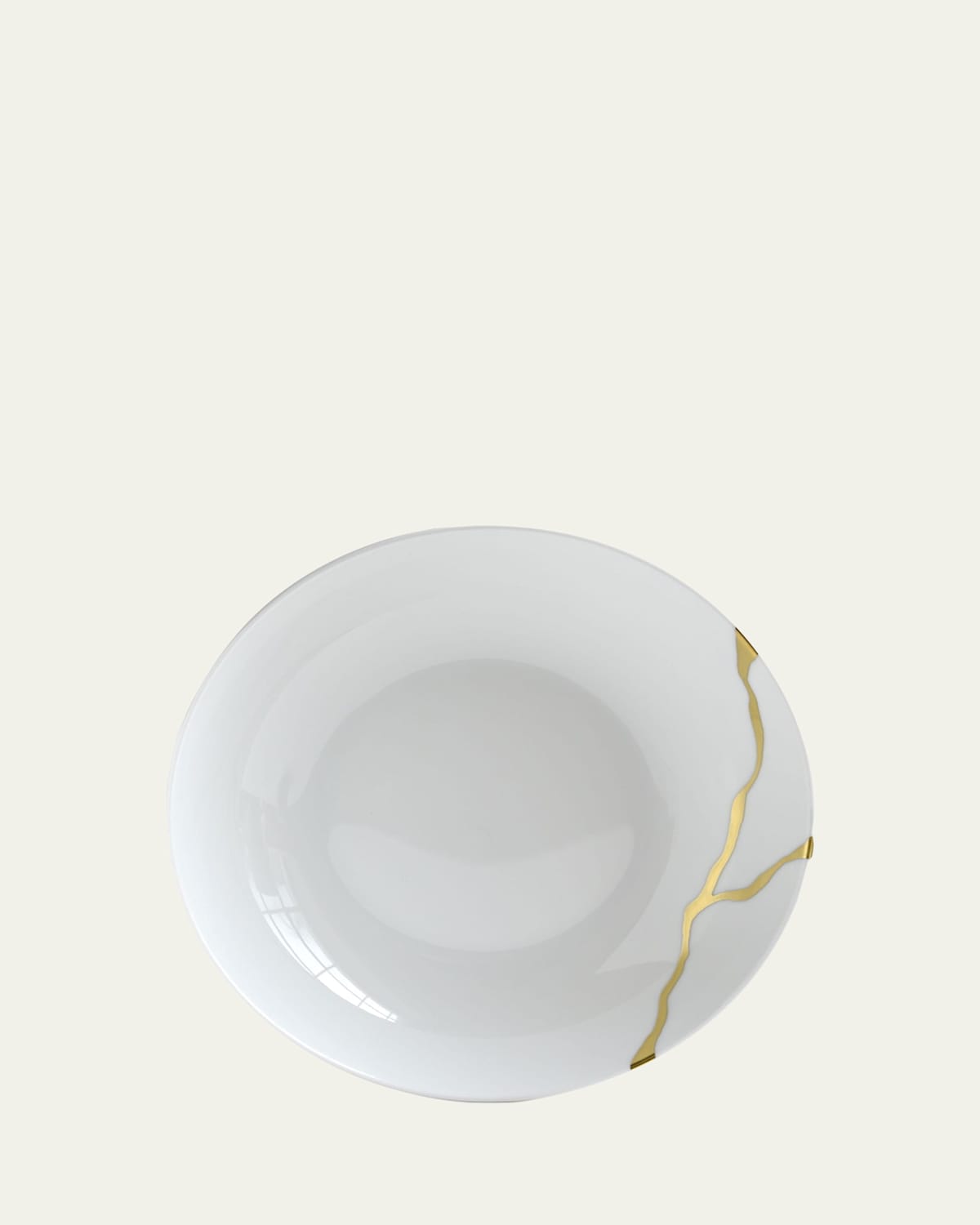 Handcrafted soup bowl features a mix of lacquer and golden tones Made of porcelain. Approx. 7.5"Dia. Hand wash. Made in France.