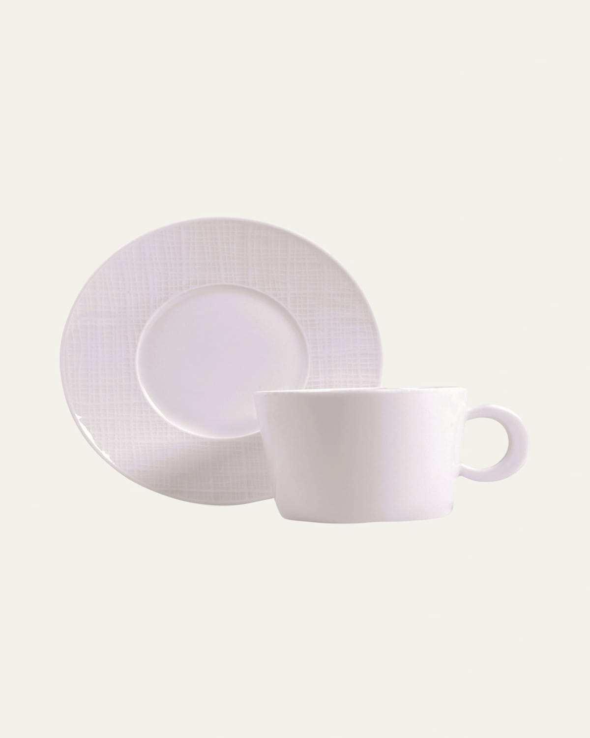 Porcelain saucer plate resembles the texture of woven fabric. Approx. 6"L. Hand wash. Made in France.