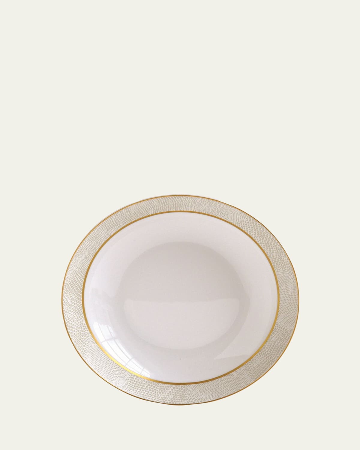 Handcrafted soup dish features the texture of reptilian skin Made of porcelain. Approx. 7.5"Dia. Hand wash. Made in France.