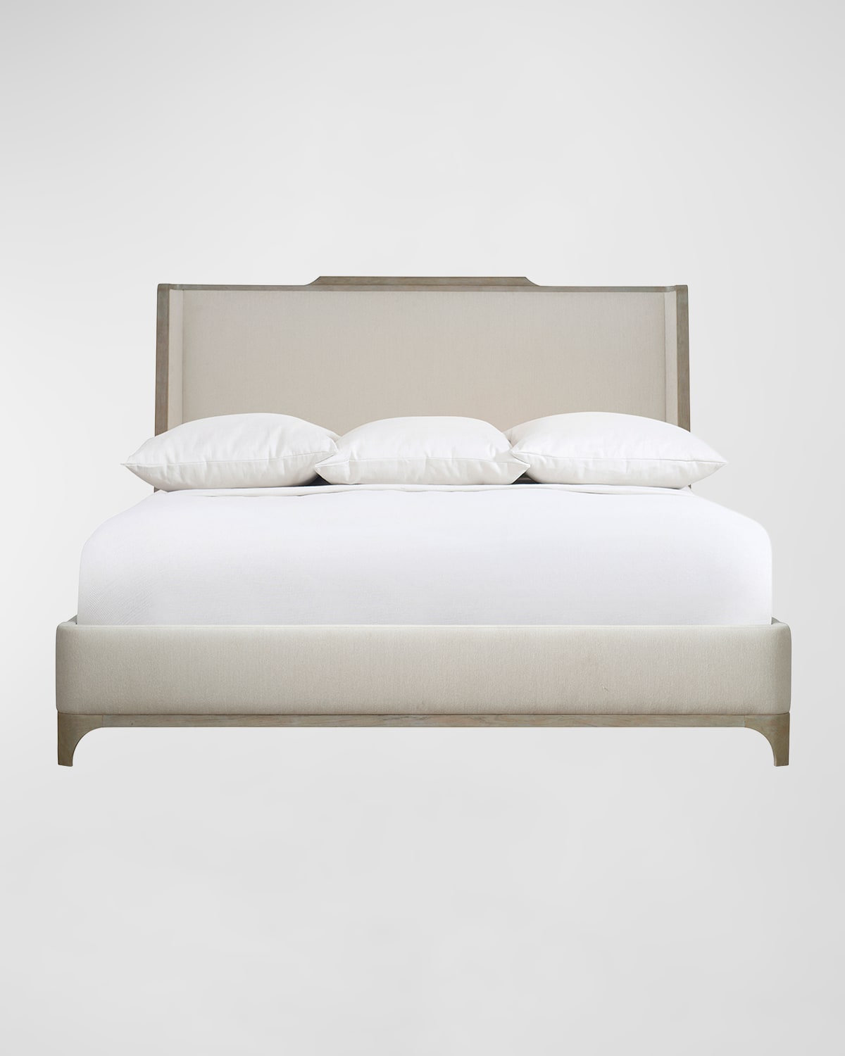 Traditional forms are juxtaposed with casual wirebrushed finishes over knotty oak in our Albion collection. The handcrafted King Shelter Bed features a curved headboard frame with padded performance fabric on the interior and exterior in pewter finished oak complemented by softly curved footboard and rails accent in pewter finished oak and performance fabric. Upholstery, polyester Overall, approx. 81.75"W x 90.8"D x 62"T Assembly required; includes hardware Weight, 127.0 lbs Imported Boxed weight, approximately 237.0 lbs