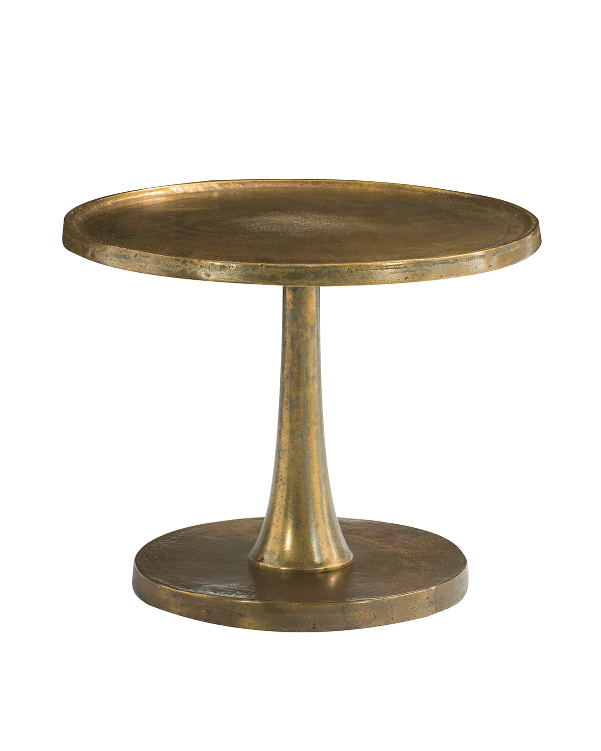Handcrafted side table. Cast aluminum in Vintage Brass Finish. Adjustable glides. 27.8"W x 27.8"D x 22"T. Imported. Boxed weight, approximately 54 lbs.
