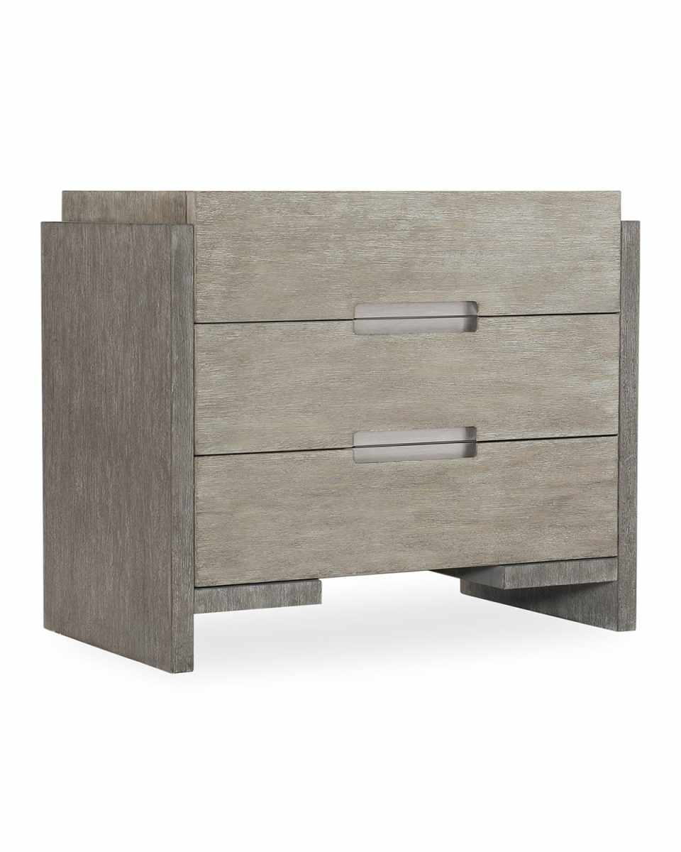 Handcrafted acacia wooden nightstand with recessed stainless steel accents in a brushed nickel finish Mortise and tenon joints ballbearing drawer glides Dualport and USB charger on the back of drawer box Three softclosing drawers with finger pull Adjustable glides Antitip kit Please note: this nightstand is not designed to support TV and/or other media Overall, approx. 34"W x 20"D x 29"T Imported Boxed weight, approximately 163.0lbs