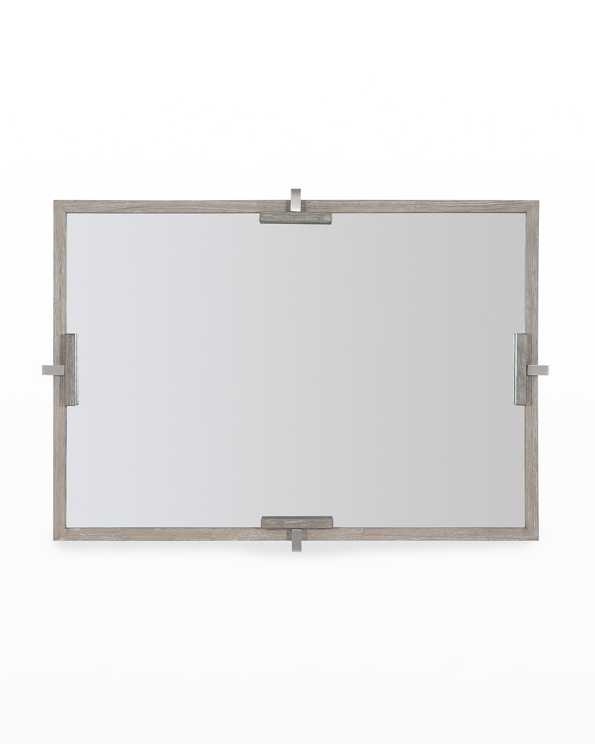 Handcrafted mirror features a light shale frame with brushed stainless steel accents Made of nonbevelled mirrored glass with wooden frame and dark shale overlay brackets Can be hung vertically or horizontally Please note: due to weight, the mirror must be hung on stud Overall, approx. 49"W x 4"D x 35"T Imported Boxed weight, approximately 58.0lbs