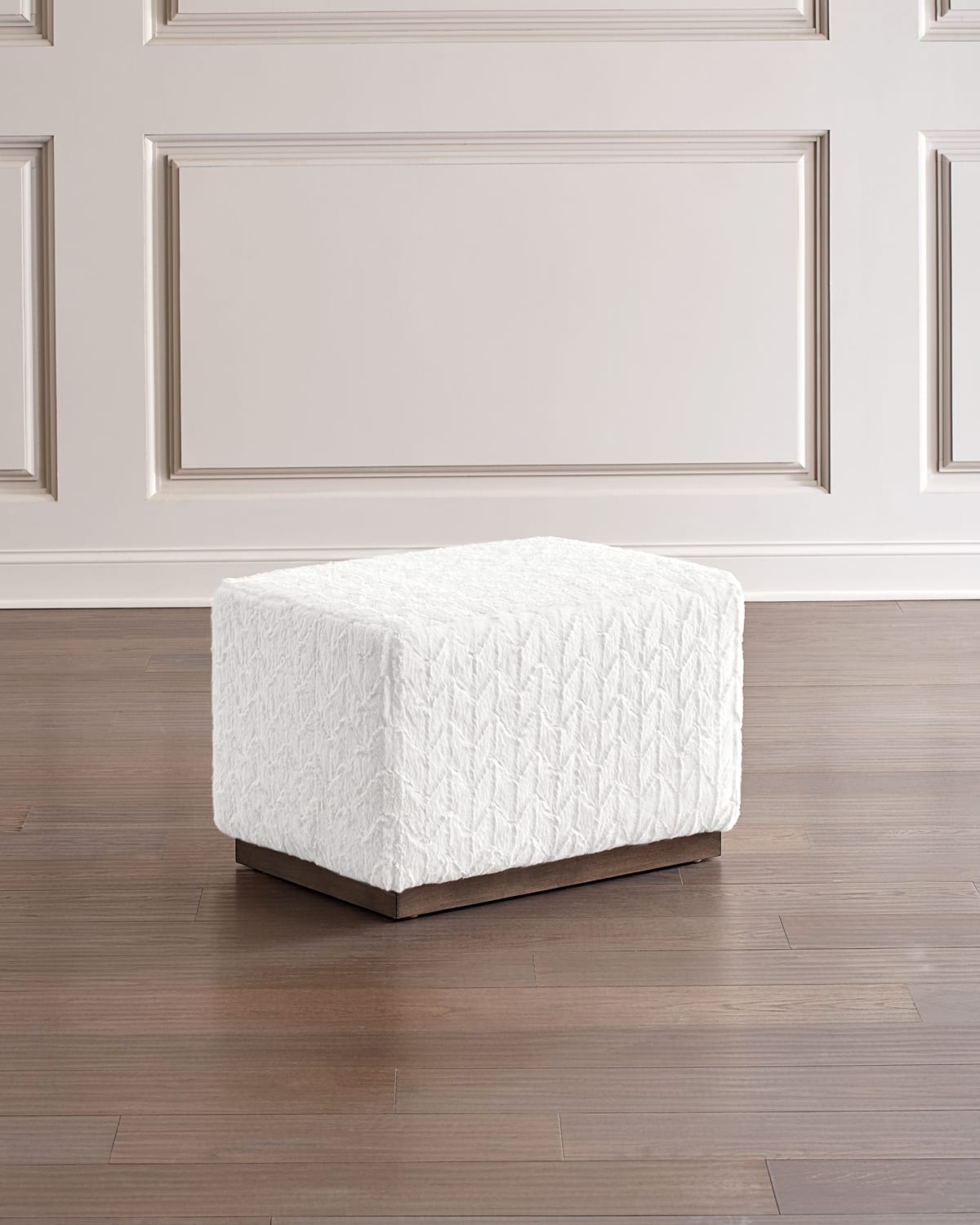 Its wide design enhances the multifunctionality of this unique piece while exuding visual appeal all on its own. This versatile cocktail ottoman (when additional quantity purchased offers a sophisticated, modern accent to any interior). Handcrafted ottoman. Engineered hardwood frame. Metal base. Fabric: polyester. 28"W x 20"D x 18"T. Made in the USA of imported materials. Boxed weight, approximately 55 lbs.