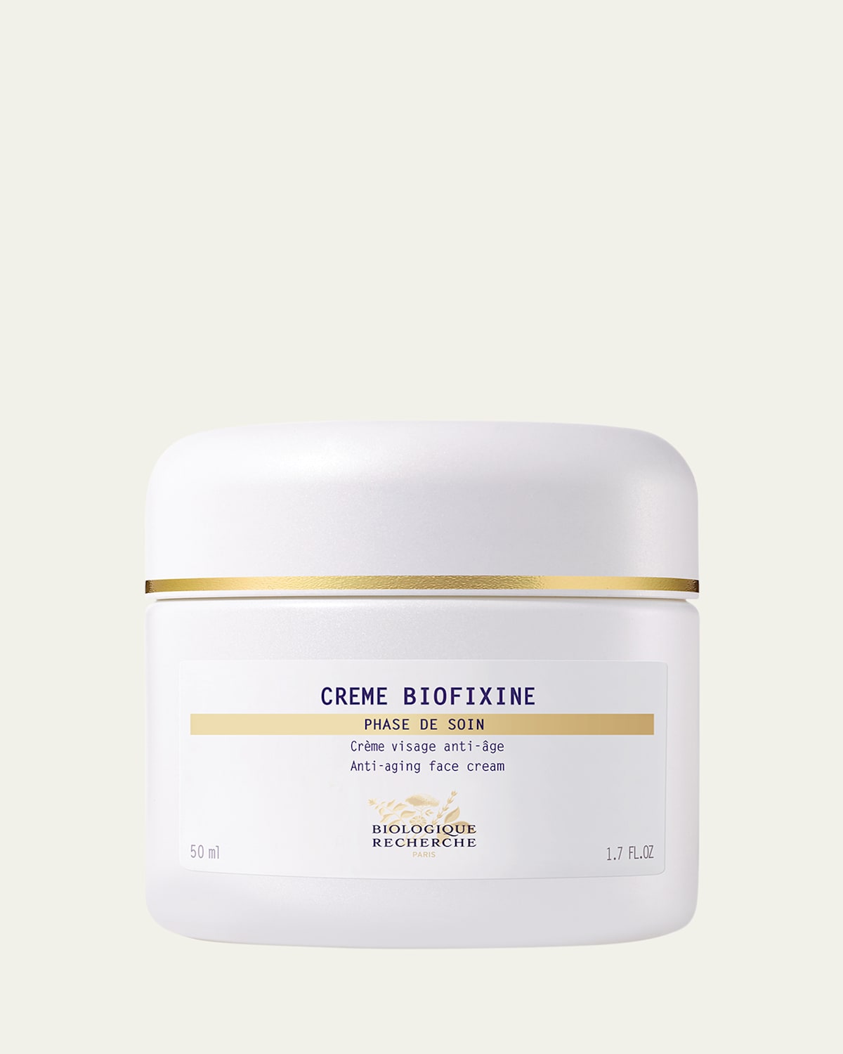 Antiageing face cream Recommended for Skin Instants that are beginning to show wrinkles. Crème Biofixine belongs to the latest generation of antiageing creams. It is enriched with Myorelax Peptide, known for its relaxant effects on the microcontractions that lead wrinkles and fine expression lines to form. The movements generated by contracting subcutaneous muscles create tension that modifies the dermis and promotes the formation of expression wrinkles. Around 30 muscles are involved in facial expression and control the movements induced by our expressions (smiling, frowning, grimacing, etc.). Every day, 15,000 movements of the facial muscles generate tension that reaches the dermis. As a result, every contraction directly impacts the skin, causing wrinkles and fine lines to appear. How to Use: Apply a small amount of product in the morning and/or at night to the entire face, neck, and décolleté, after using the milk and the recommended P50 Lotion and the Sérums Authentiques. Do not use it on children under 3. For external use only. Ingredients: Water (Aqua), Stearic Acid, Palmitic Acid, Glycerin, Propylene Glycol, Vitis Vinifera (Grape) Seed Oil, Cetyl Alcohol, Pentylene Glycol, Polysorbate 40, Helianthus Annuus (Sunflower) Seed Oil, Butylene Glycol, Peg2 Stearate, Nasturtium Officinale Extract, Juglans Regia (Walnut) Seed Extract, Leontopodium Alpinum Flower/leaf Extract, Pimpinella Anisum (Anise) Fruit Extract, Acetyl Hexapeptide8, Triethanolamine, Teastearate, Disodium Edta, Caprylyl Glycol, Panisic Acid, Phenoxyethanol, Benzoic Acid, Sodium Metabisulfite, Sorbic Acid. Please Note: This ingredient list is subject to change. Please refer to the product packaging for the most uptodate ingredient