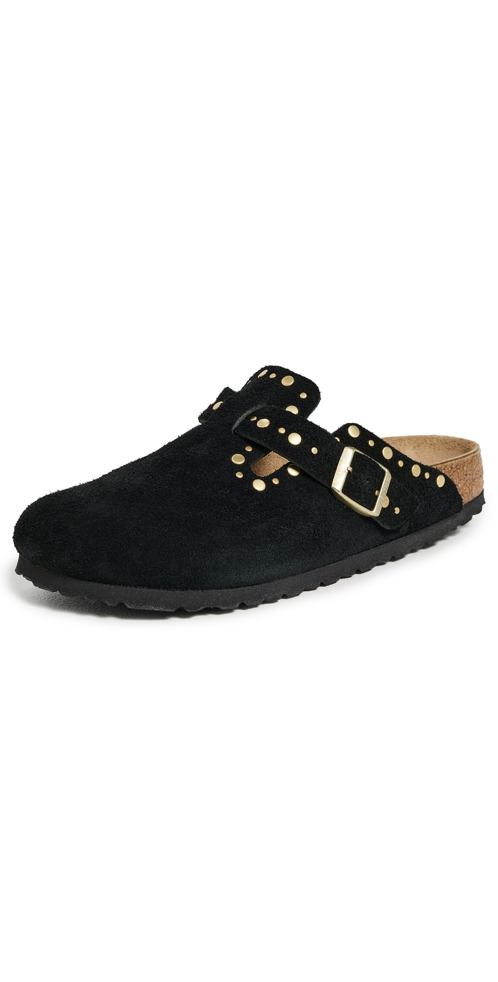 Upper: Cowhide suede. Narrow fit. Soft cork footbed. Studded trim. Lining: Suede. Buckle strap. Rounded toe. Rubber sole. Made in Germany. This item cannot be gift-boxed.